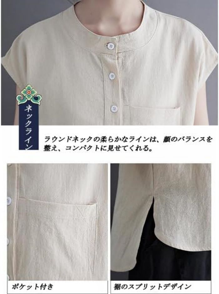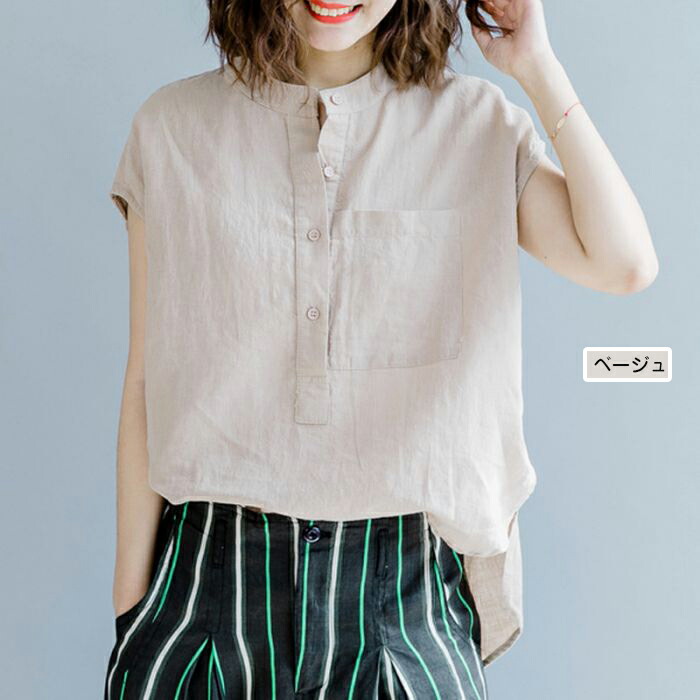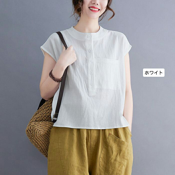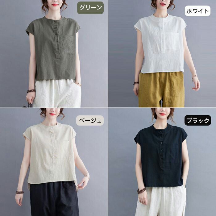 リネン シャツ レディース 半袖 綿麻 トップス シャツ ブラウス 割引 ベージュ ホワイト グリーン ブラック M L XL 2XL