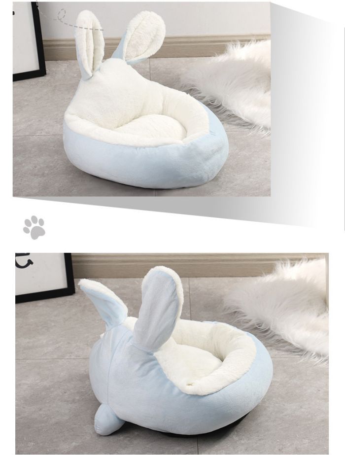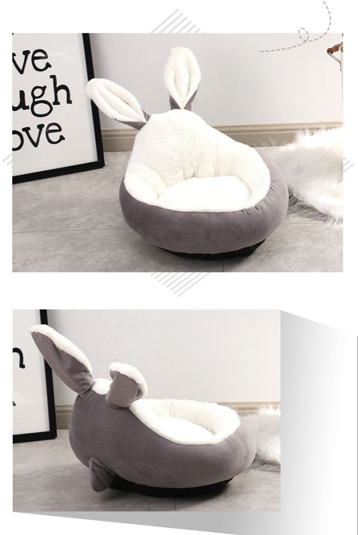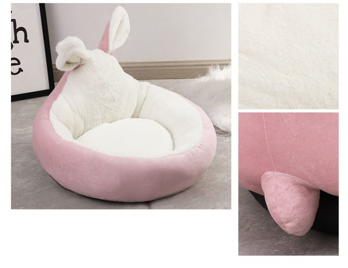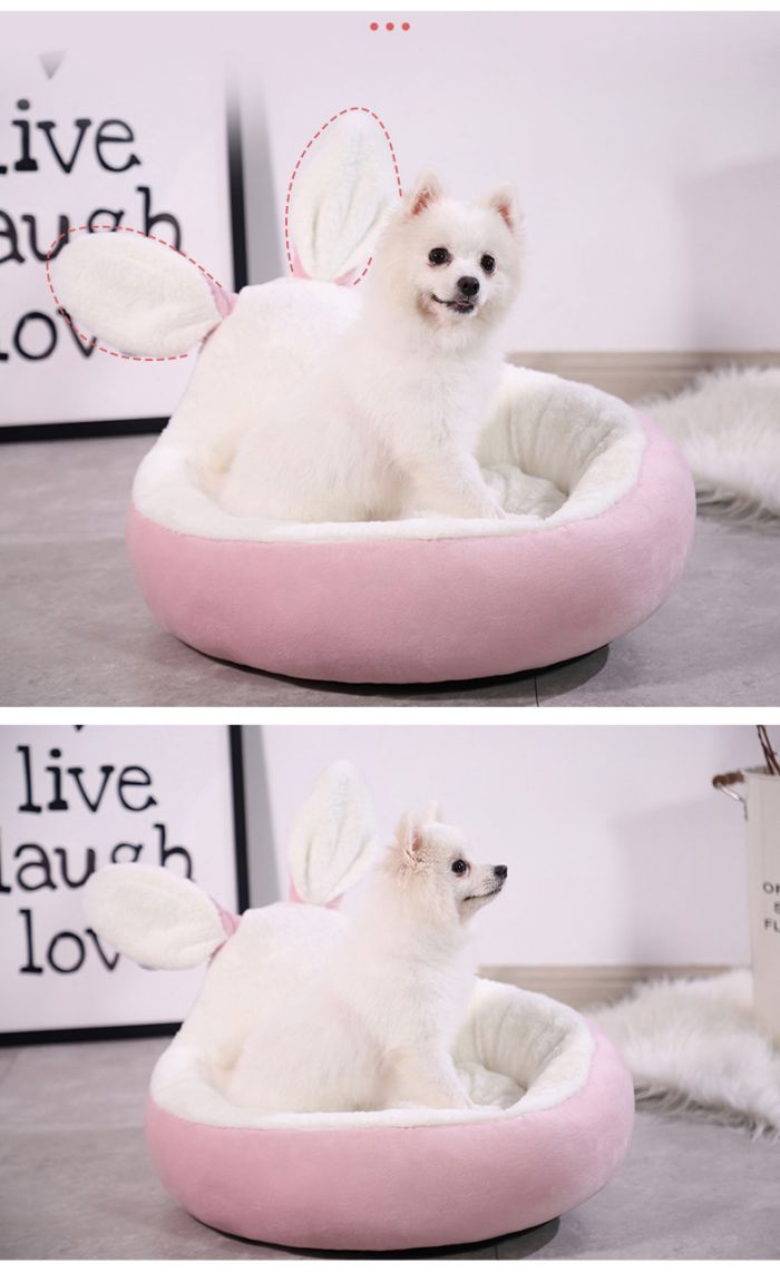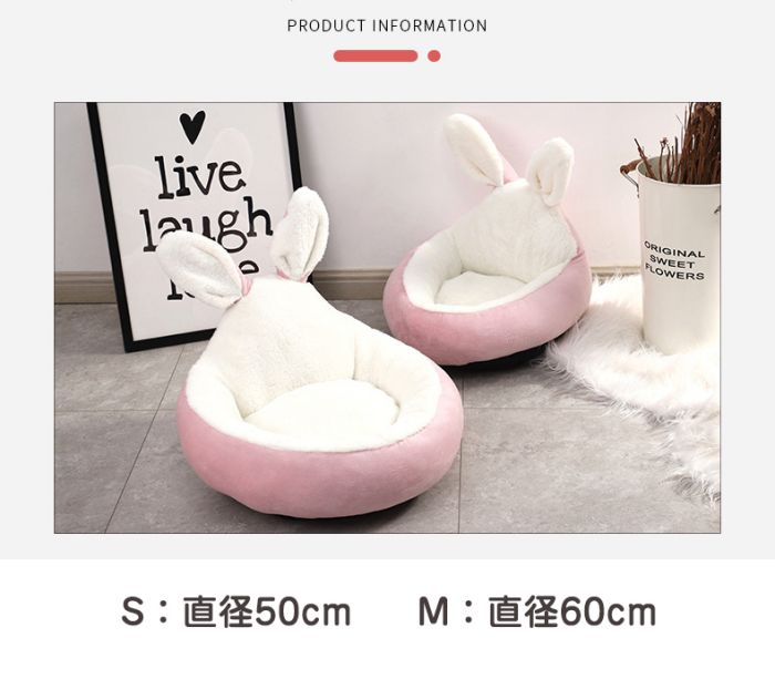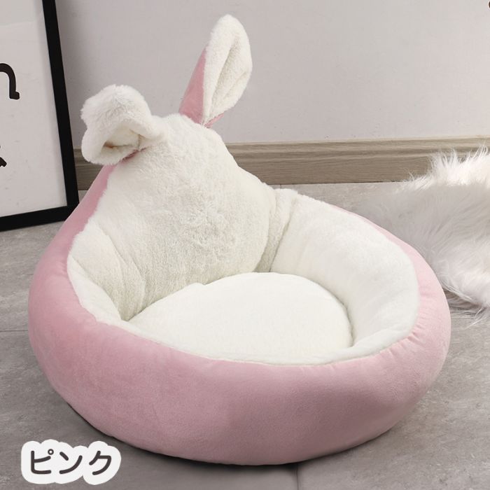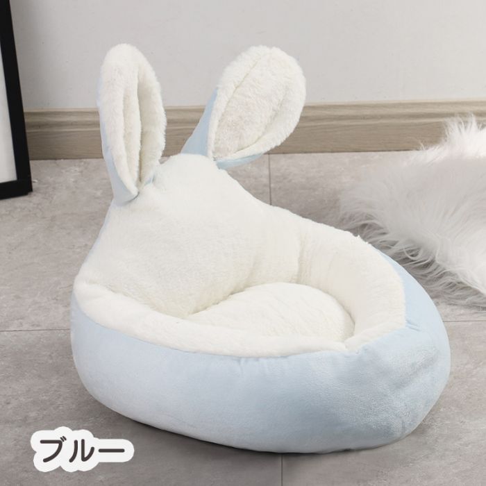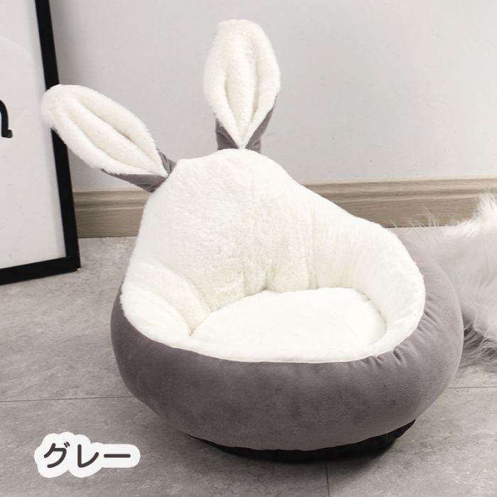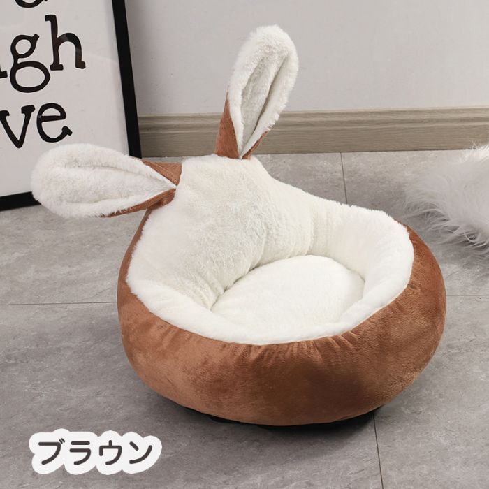 犬ベッド 円型 うさぎ耳型 猫クッショ ペット ペットグッズ 通販 ピンク グレー ブルー ブラウン S M