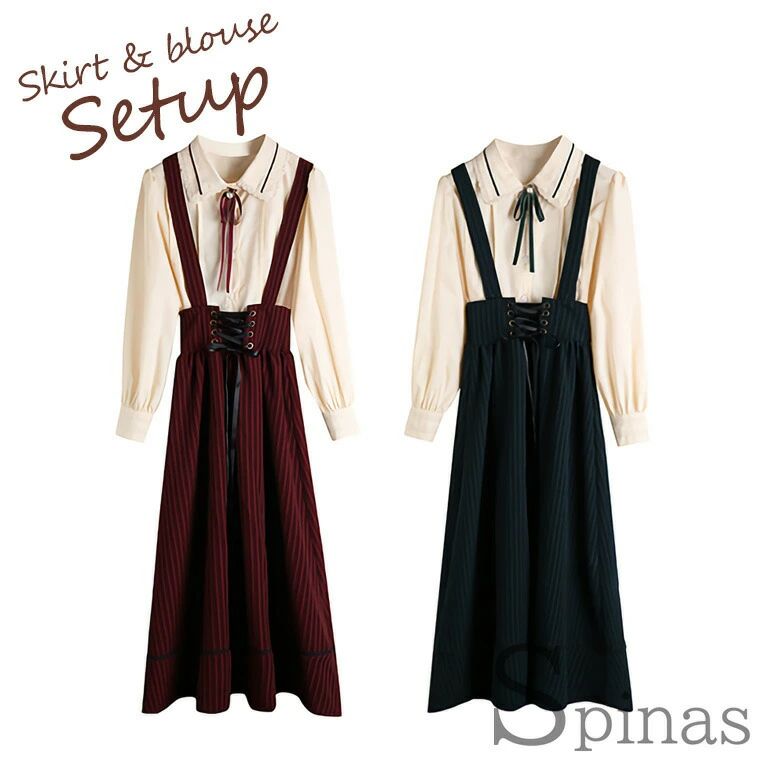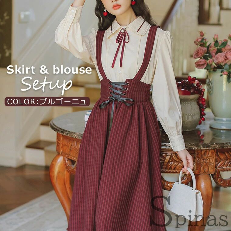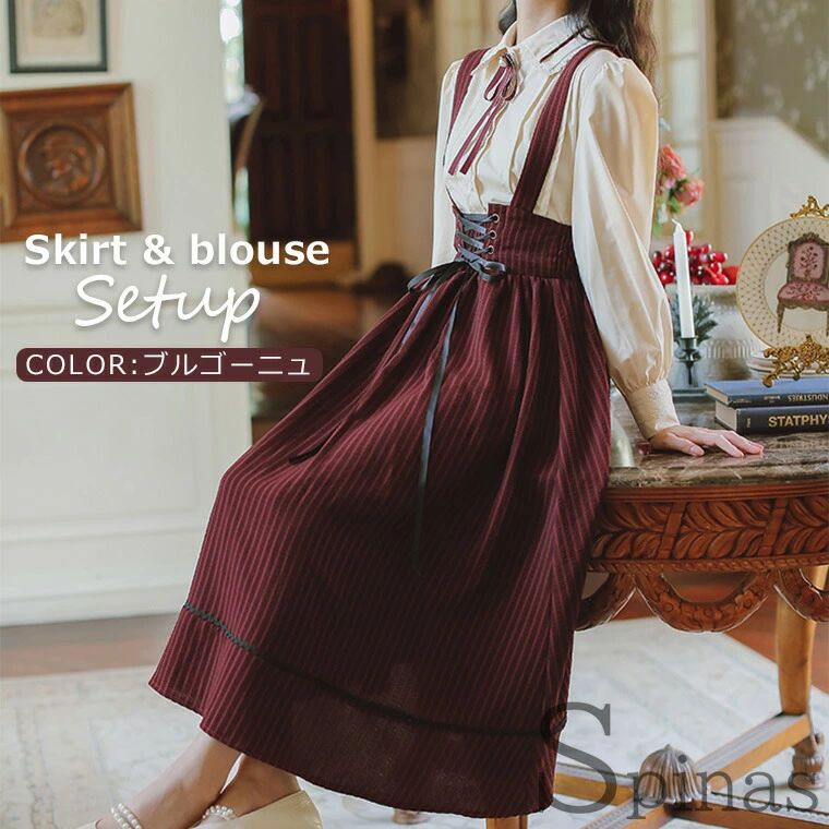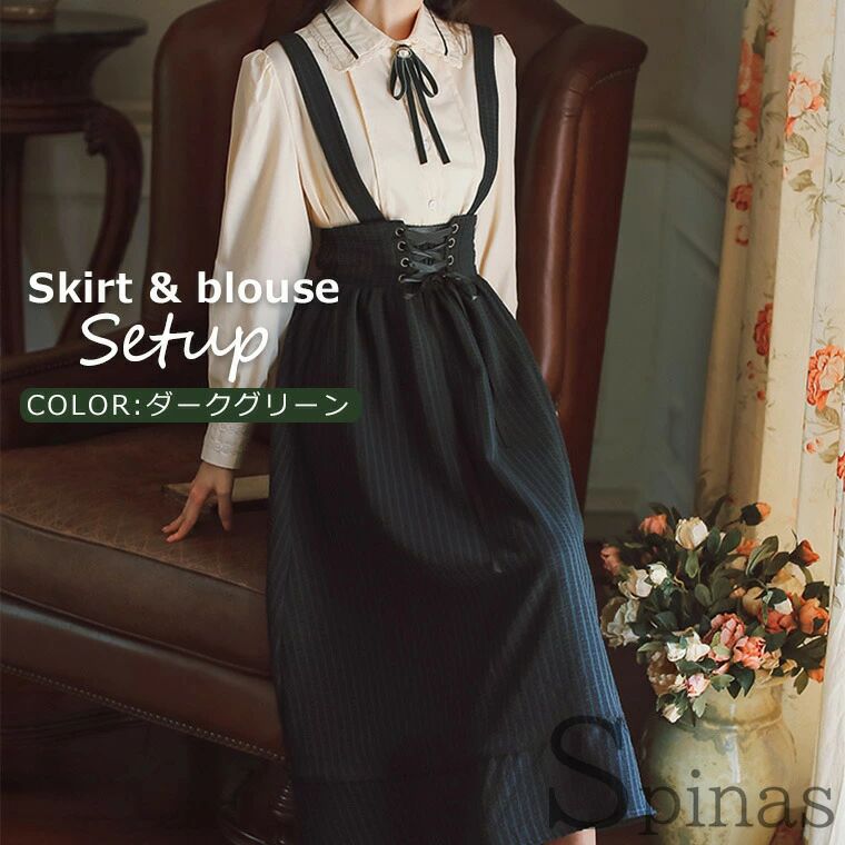 スカート&ブラウス2点セット レディー レディースファッション 続々登場 ブルゴーニュ ダークグリーン S M L XL