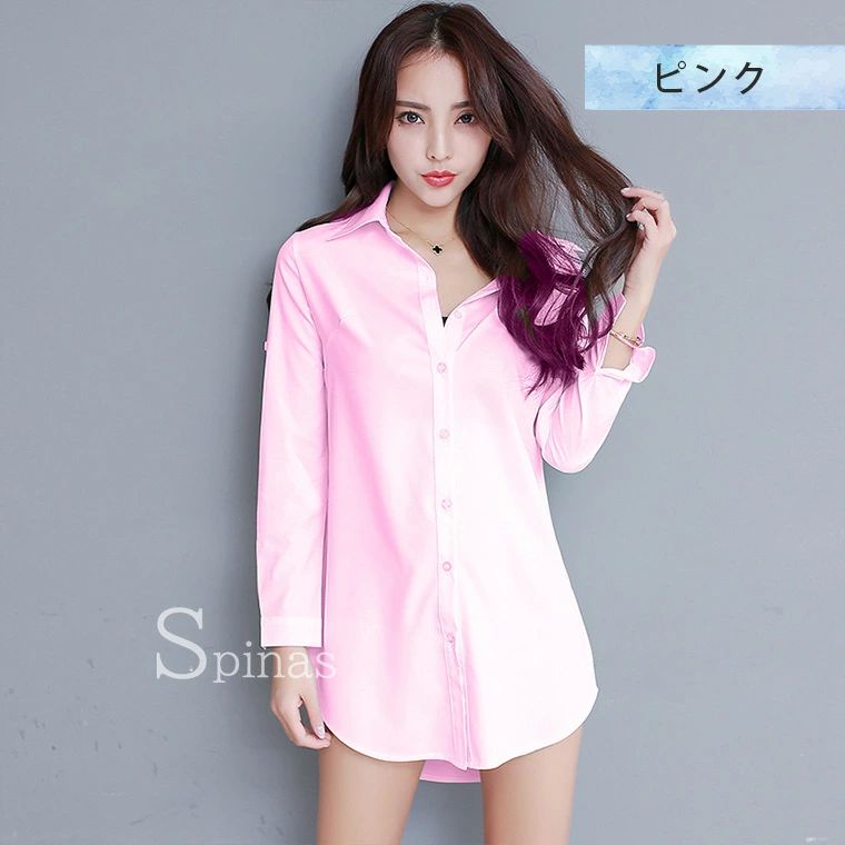 大人セクシーな ロング丈 白シャツ ワ トップス シャツ ブラウス 続々登場 ホワイト ブルー ピンク S M L XL 2XL 3XL 4XL 5XL