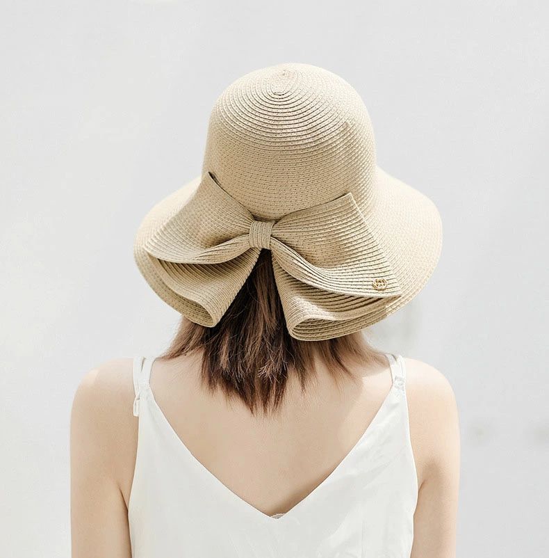 大きめリボンがポイント 麦わら ハット 帽子 レディース帽子 麦わら帽子 続々入荷中 ベージュ ライトブラウン グレー ダークグレー ブラック ピンク レッド