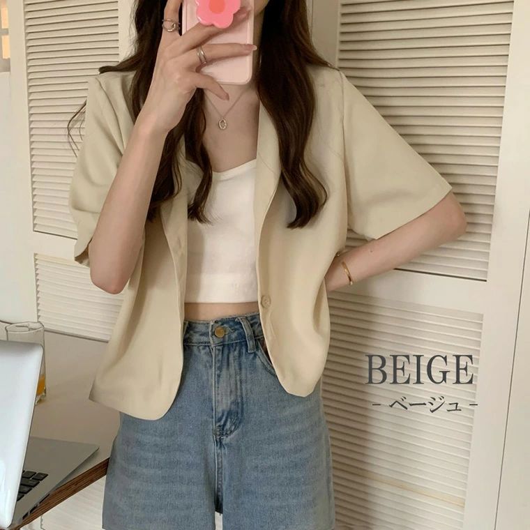 カジュアルコーデにきちんと感をプラスしてくれる半袖テーラードジャケットです