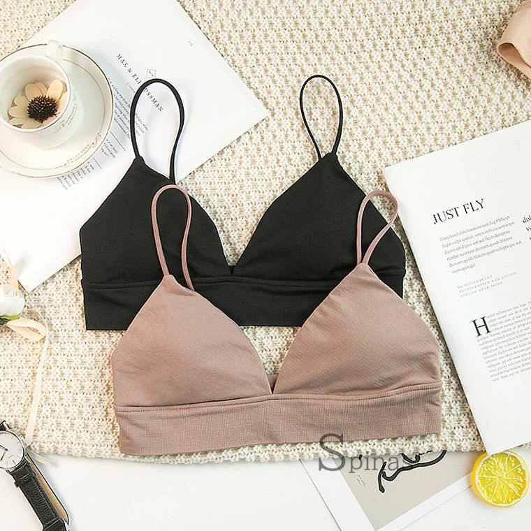 2枚セット 盛らない楽ちん三角ブラ 気 レディース インナー 下着 ブラジャー 人気 ブラック2枚 ナチュラル2枚 ベージュ2枚 S M L