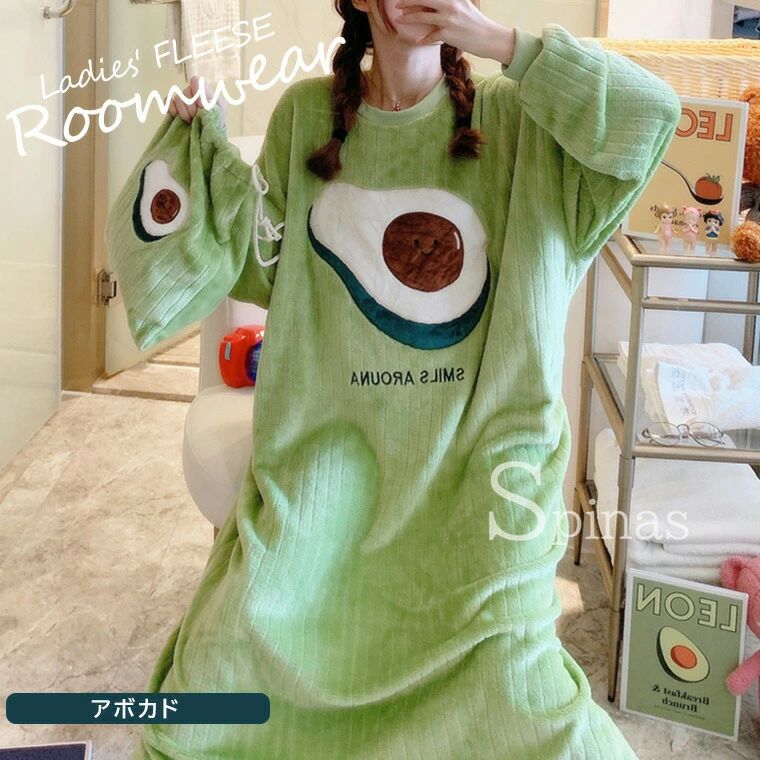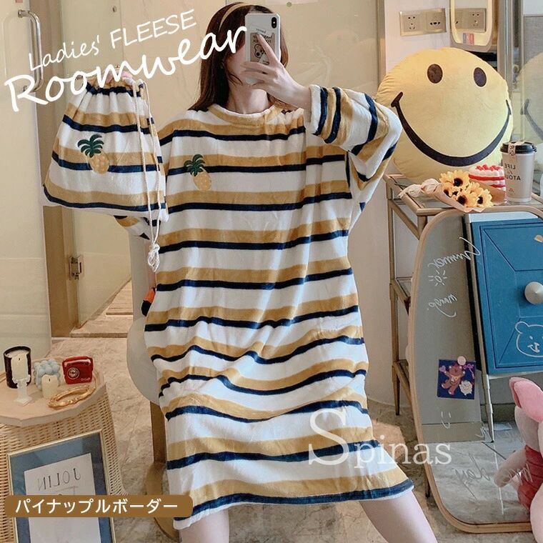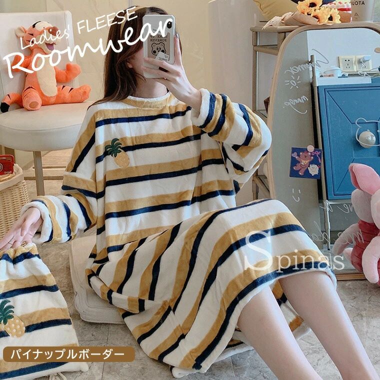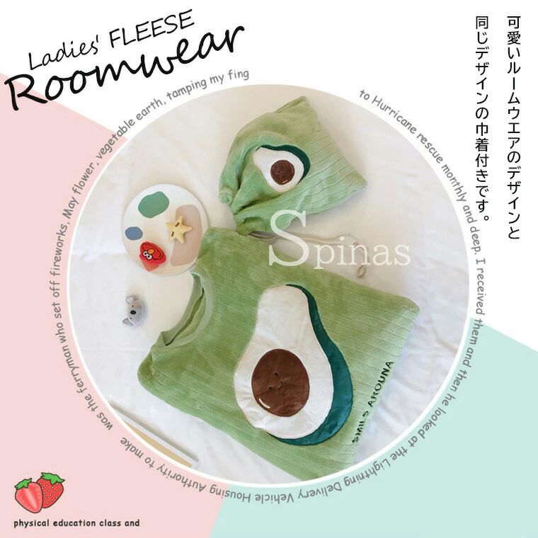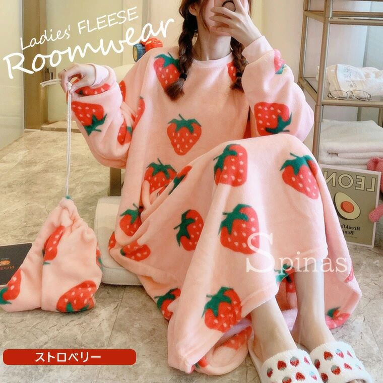 レディース フリース ルームウェア パ アボカド ストロベリー レインボー ブラックドット パイナップルボーダー M L XL XXL
