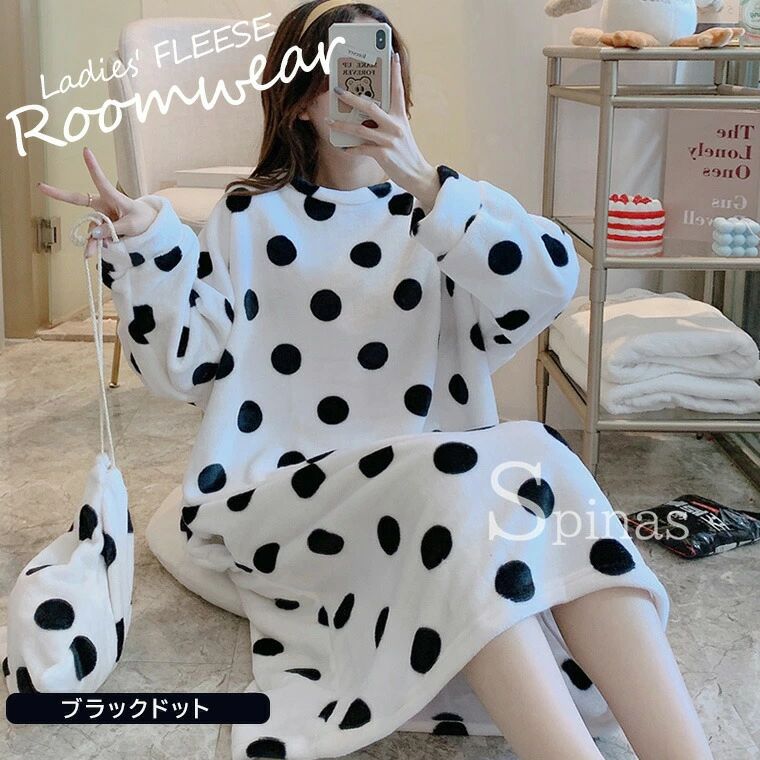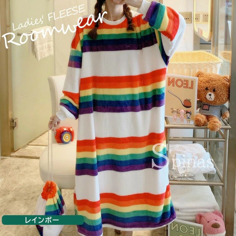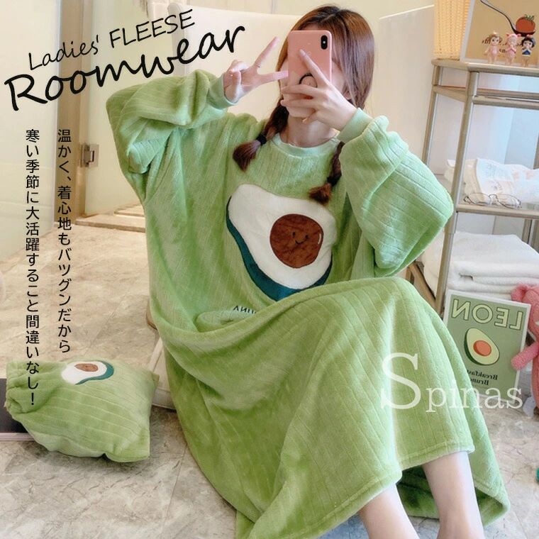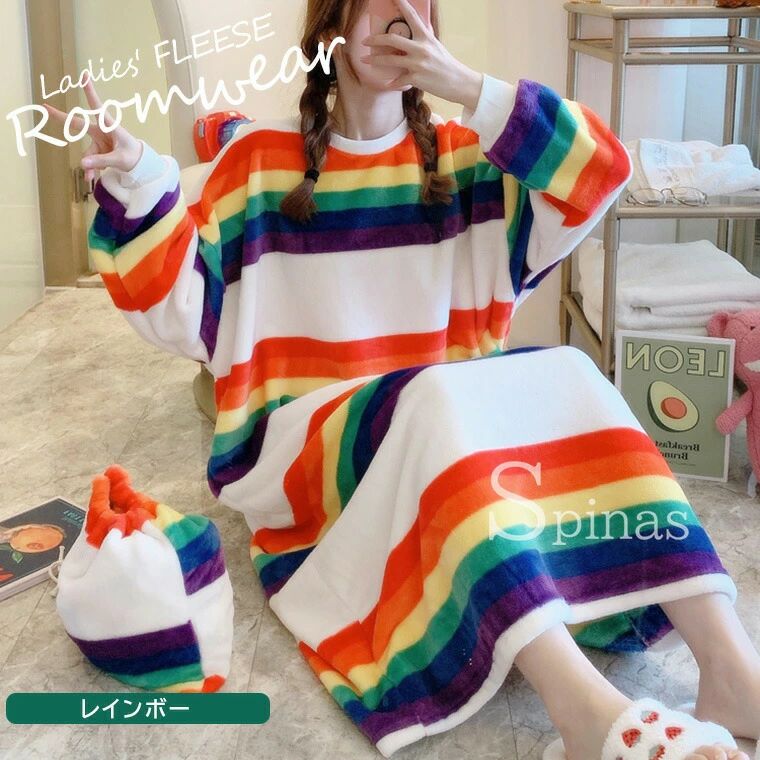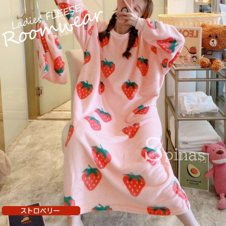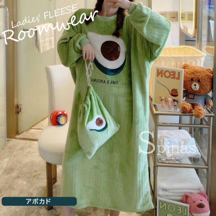 レディース フリース ルームウェア パ アボカド ストロベリー レインボー ブラックドット パイナップルボーダー M L XL XXL