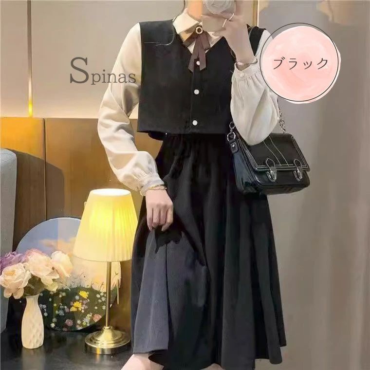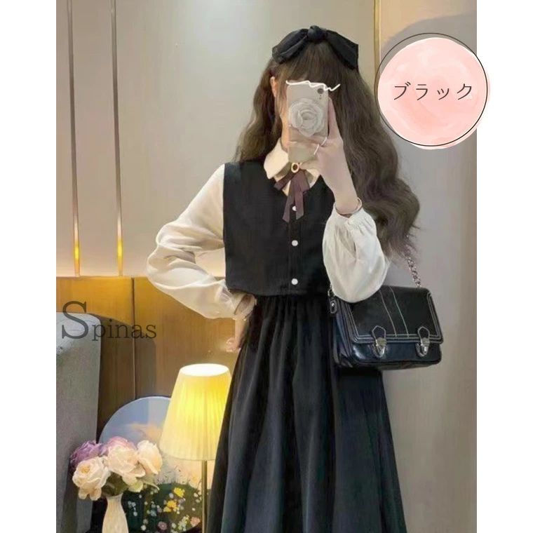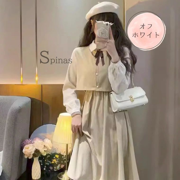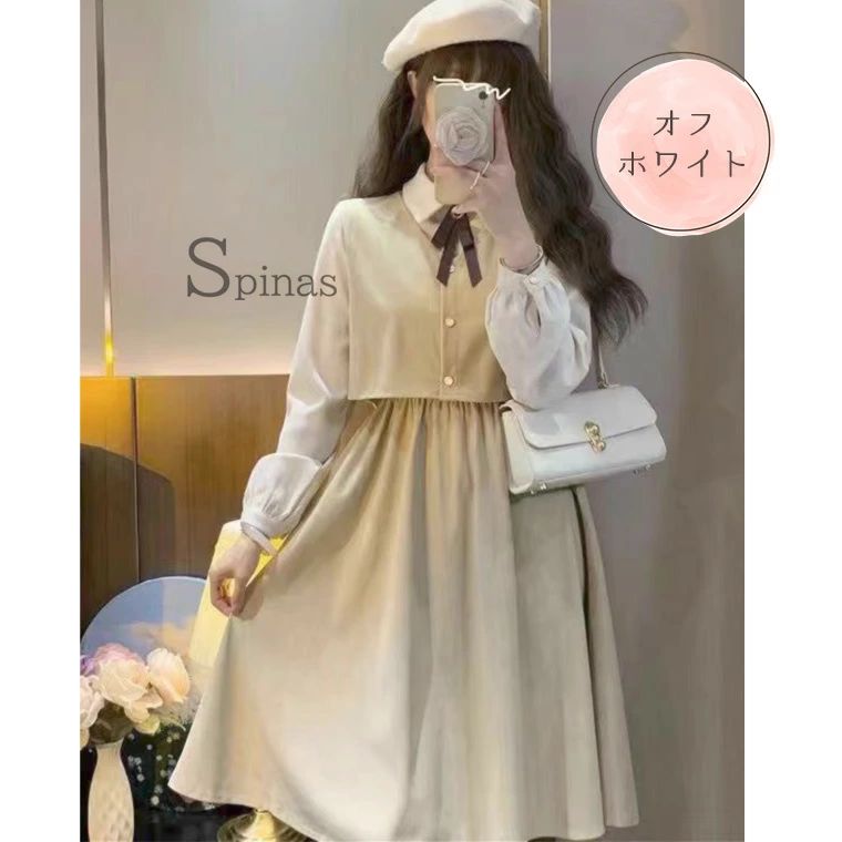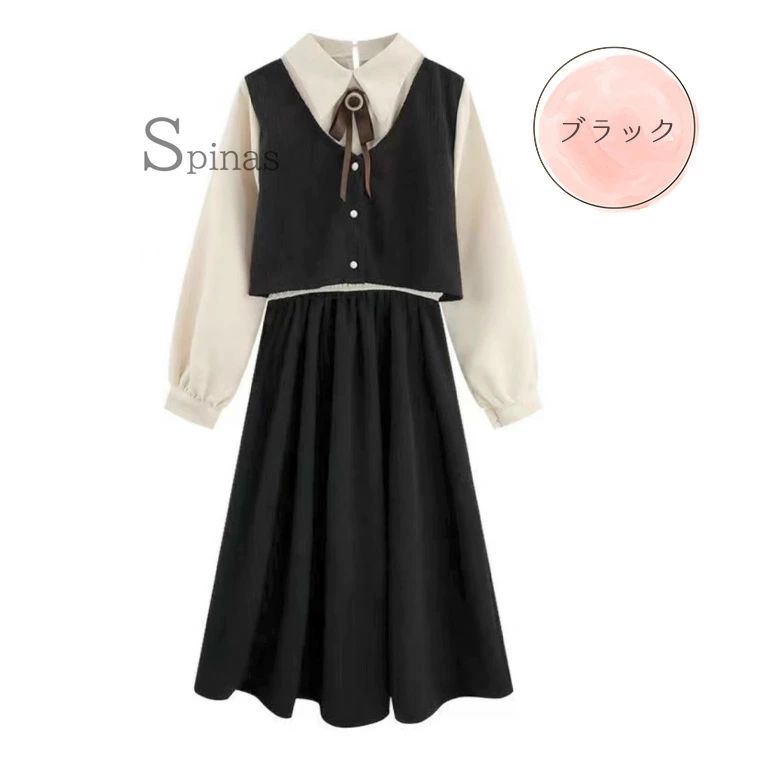 S-XL 清楚イメージ 制服風ワンピー ワンピース 42%Off ブラック オフホワイト S M L XL