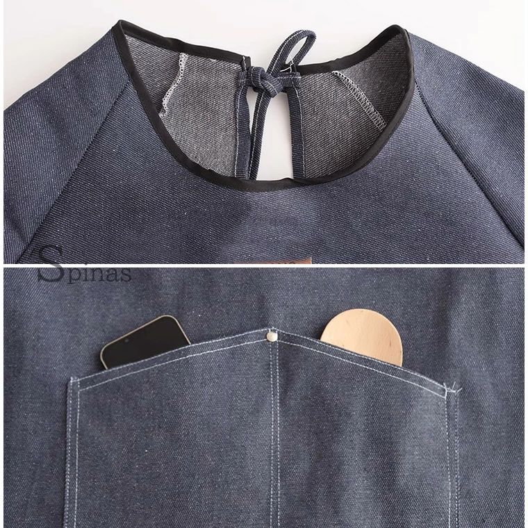 デニム メンズ レディース お洒落な長 配膳用品 キッチンファブリック エプロン 三角巾 割烹着 スモック 割引 着丈100 着丈110