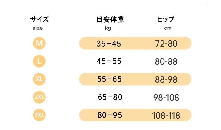 3XL:推奨体重80-95kg ヒップ108-118cm