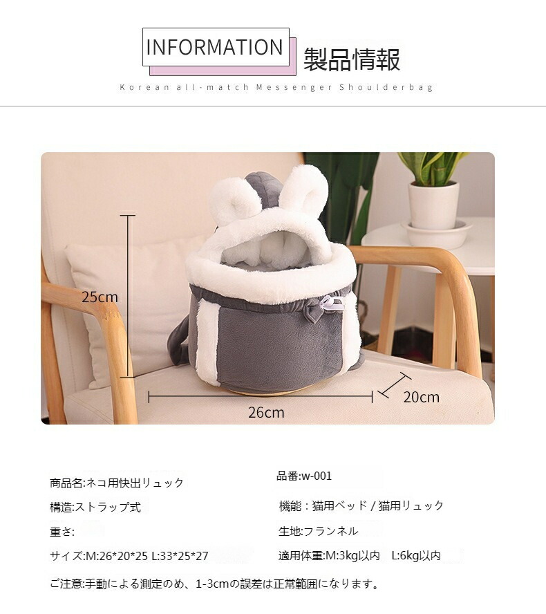 ペットスリング キャリーバッグ 抱っこ 猫用品 キャリーバッグ カート リュックキャリー お買い得 グレー ピンク S(3kg以内) M(6kg以内) L(8kg以内)
