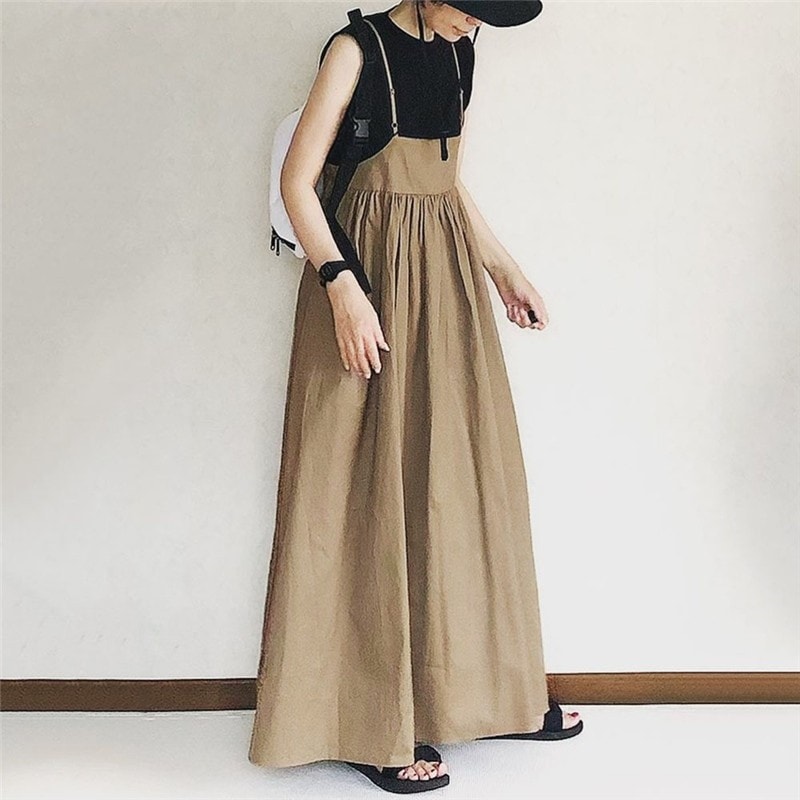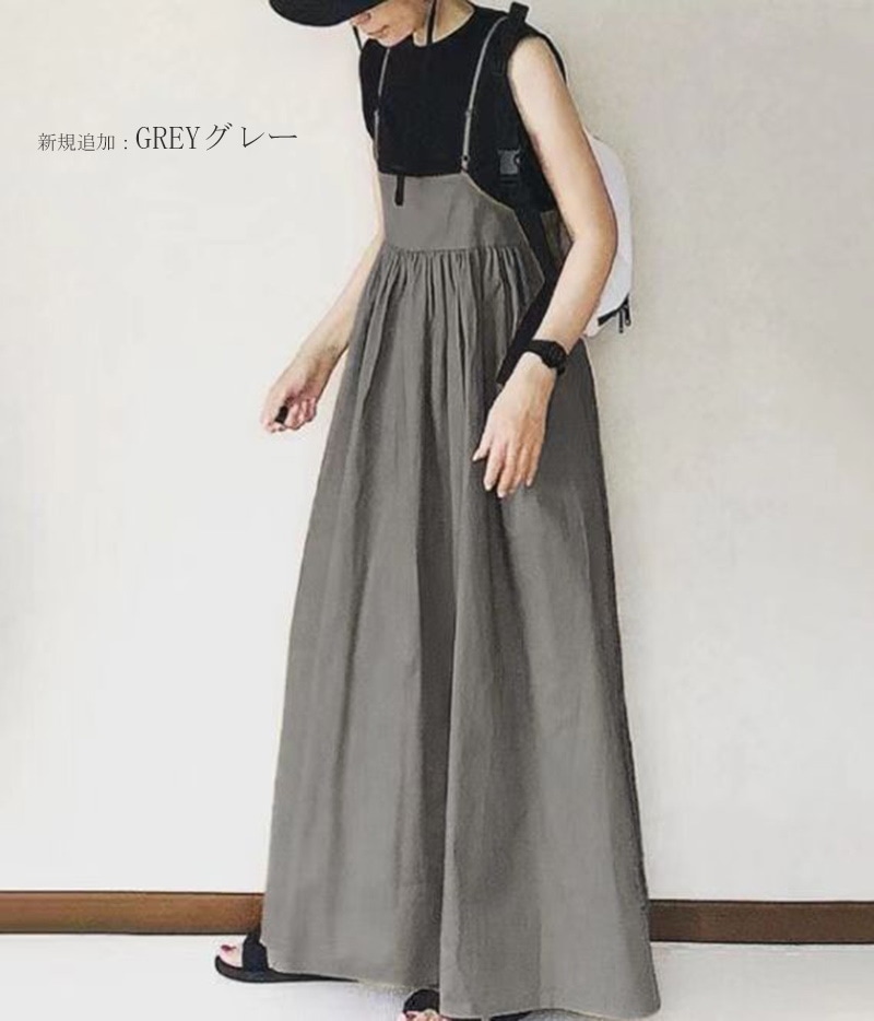 ロングワンピース レディース キャミ レディースファッション 続々登場 グレー ブラック ベージュ グリーン カーキ