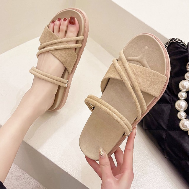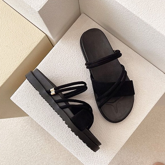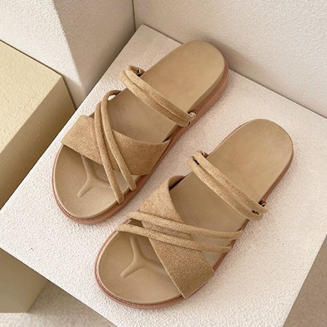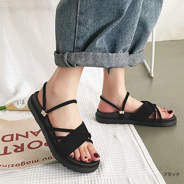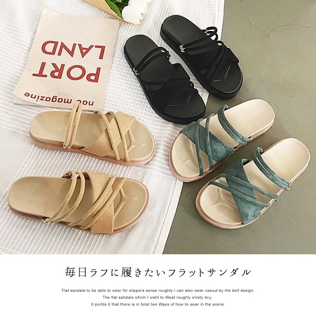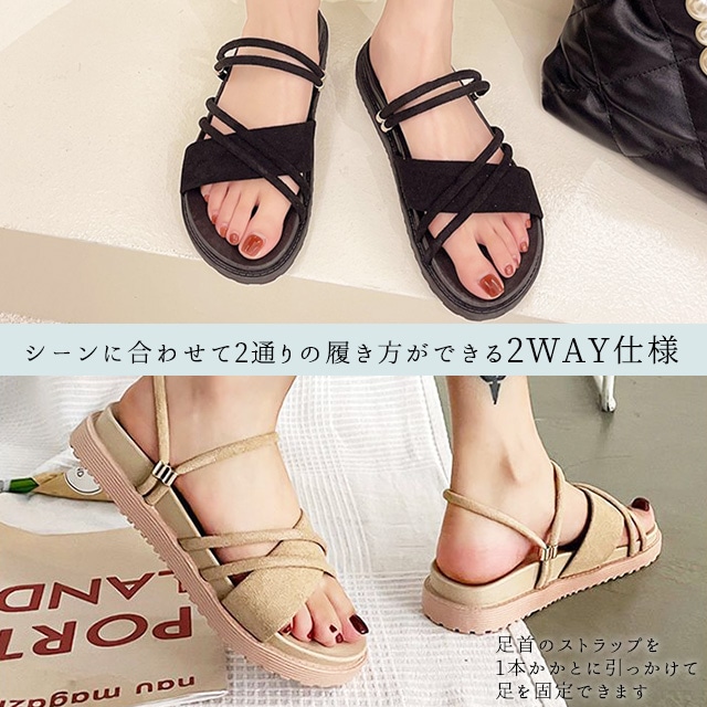 サンダル ミュールサンダル ビーチサンダル レディース おしゃれ フラットサンダル 2WAY ダブルストラップ ベルトサンダル ファッションサンダル 軽量 柔軟 クロス 歩きやすい シンプル 痛くない