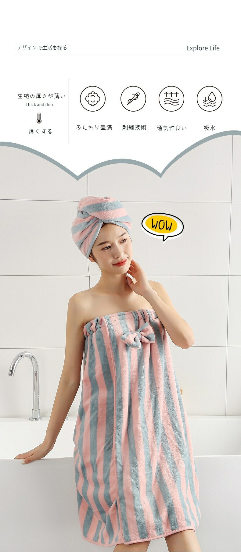 ラップタオル 巻きタオル 女の子 タオ インナー 下着 ナイトウエア 割引 ピンク グレー