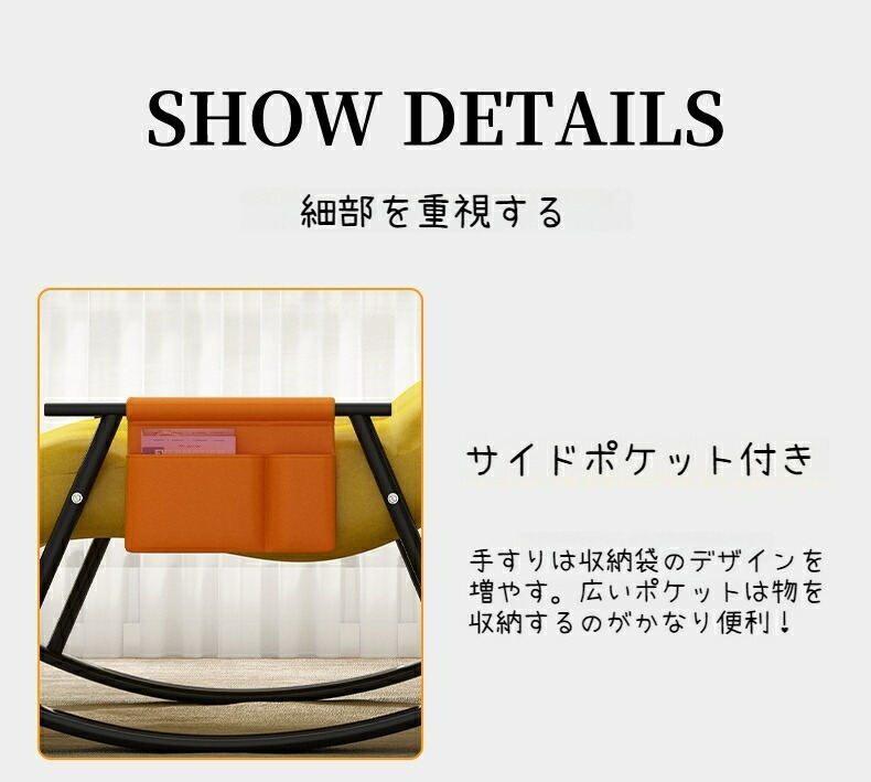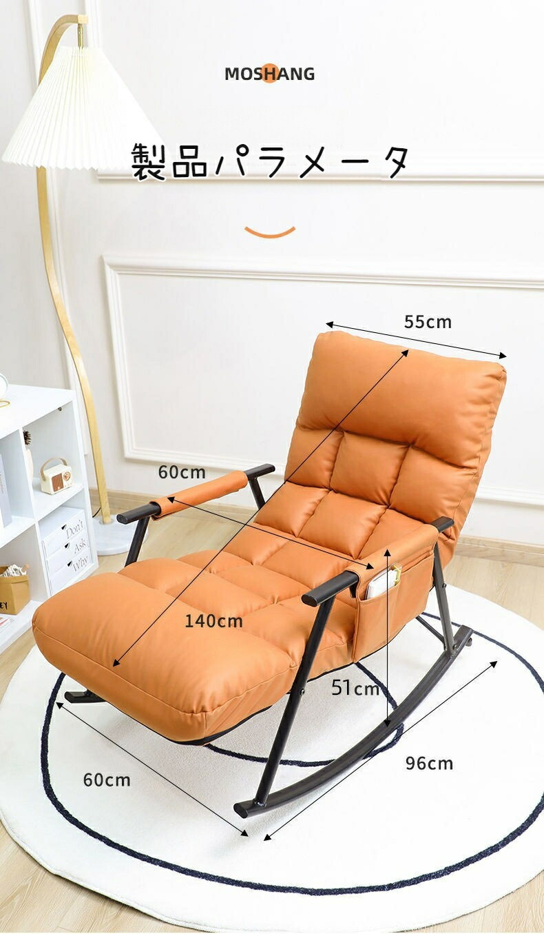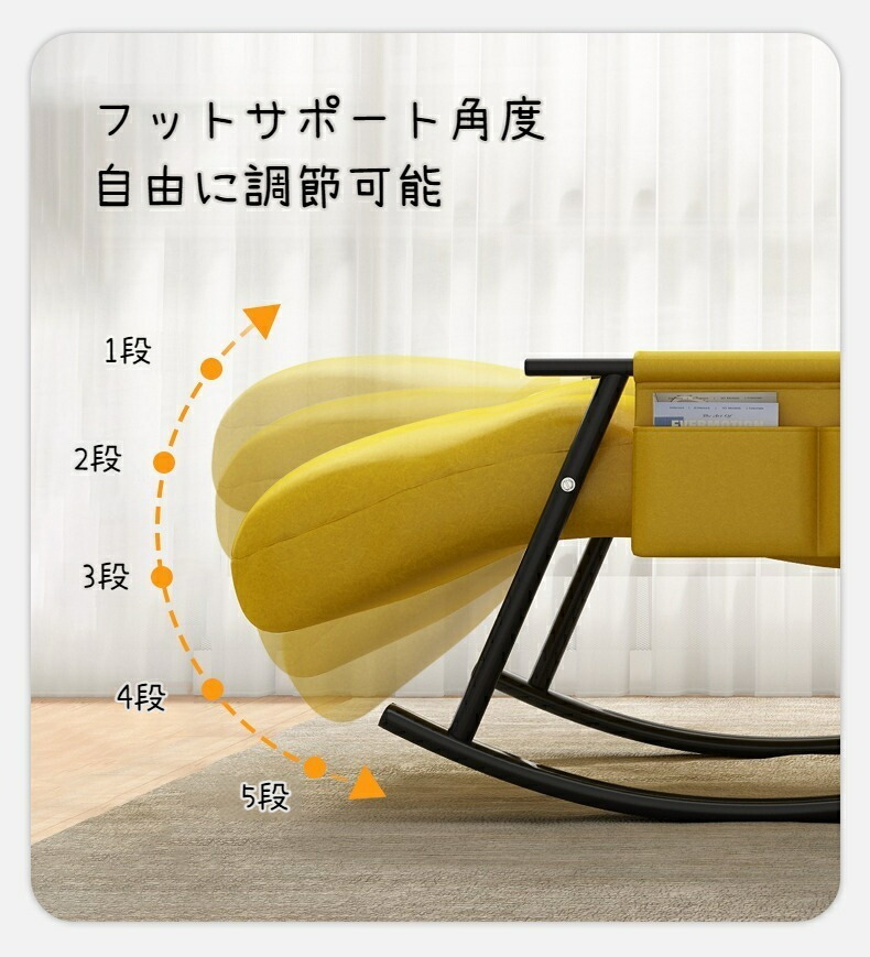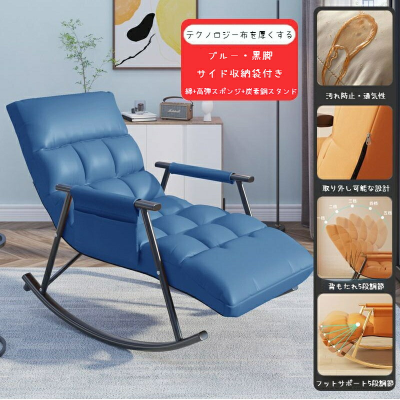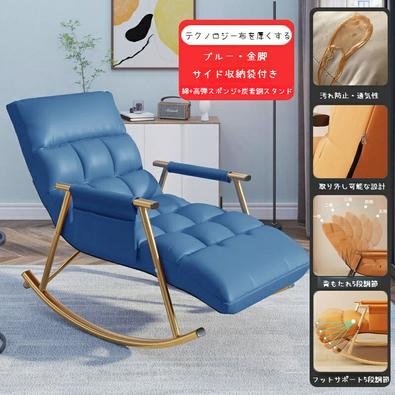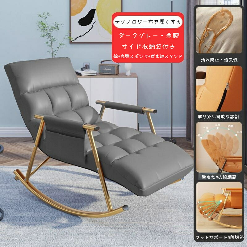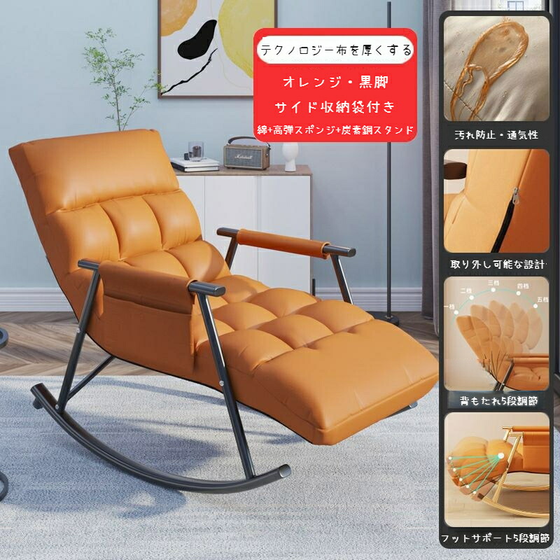 ロッキングチェア リクライニングチェア オレンジ ダークグレー グレー ブルー イエロー 黒脚 金脚