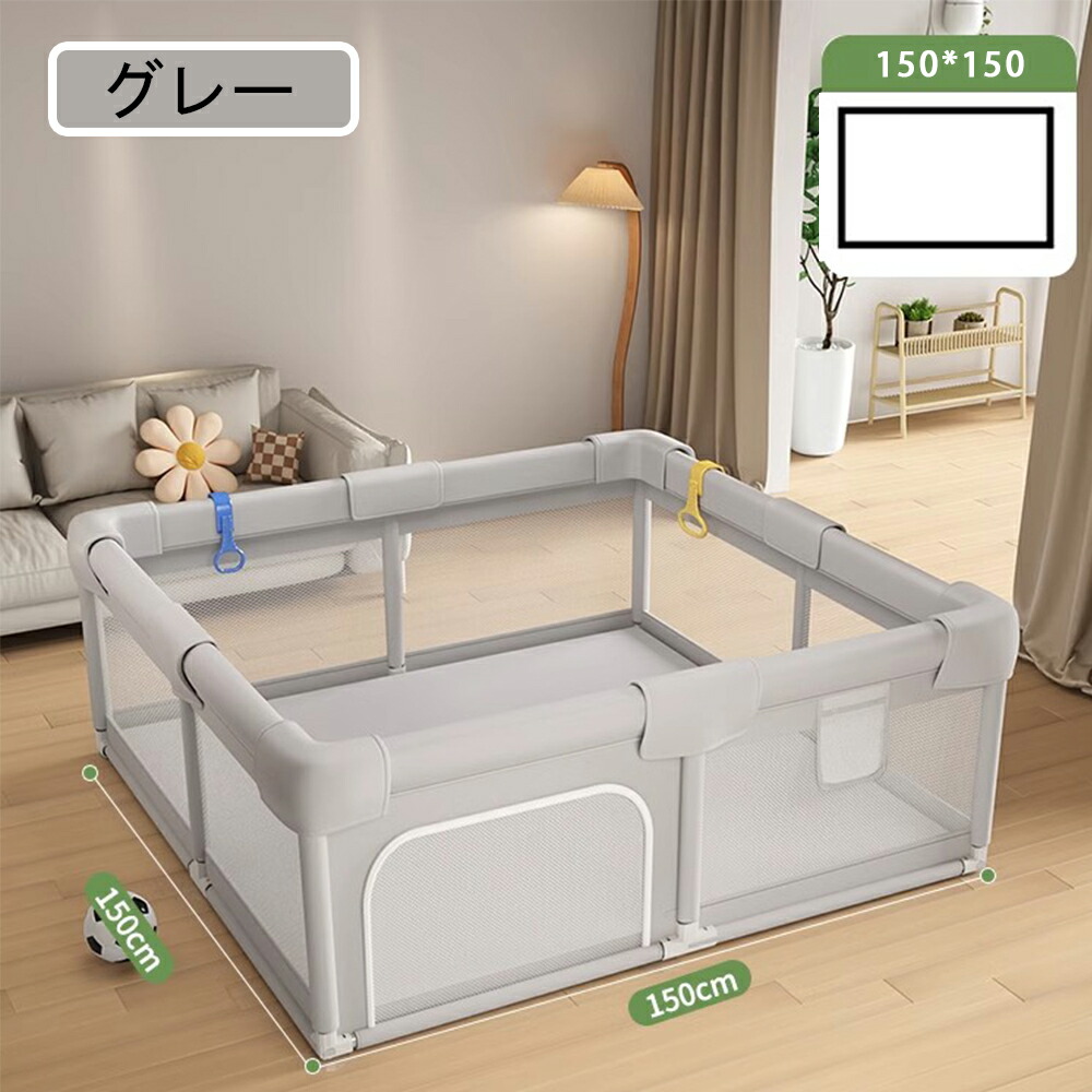 ベビーサークル メッシュ 四角 200 ベビー セーフティーグッズ ベビーサークル プレイヤード 豊富な品揃え グレー アイスグリーン 150*150 180*200