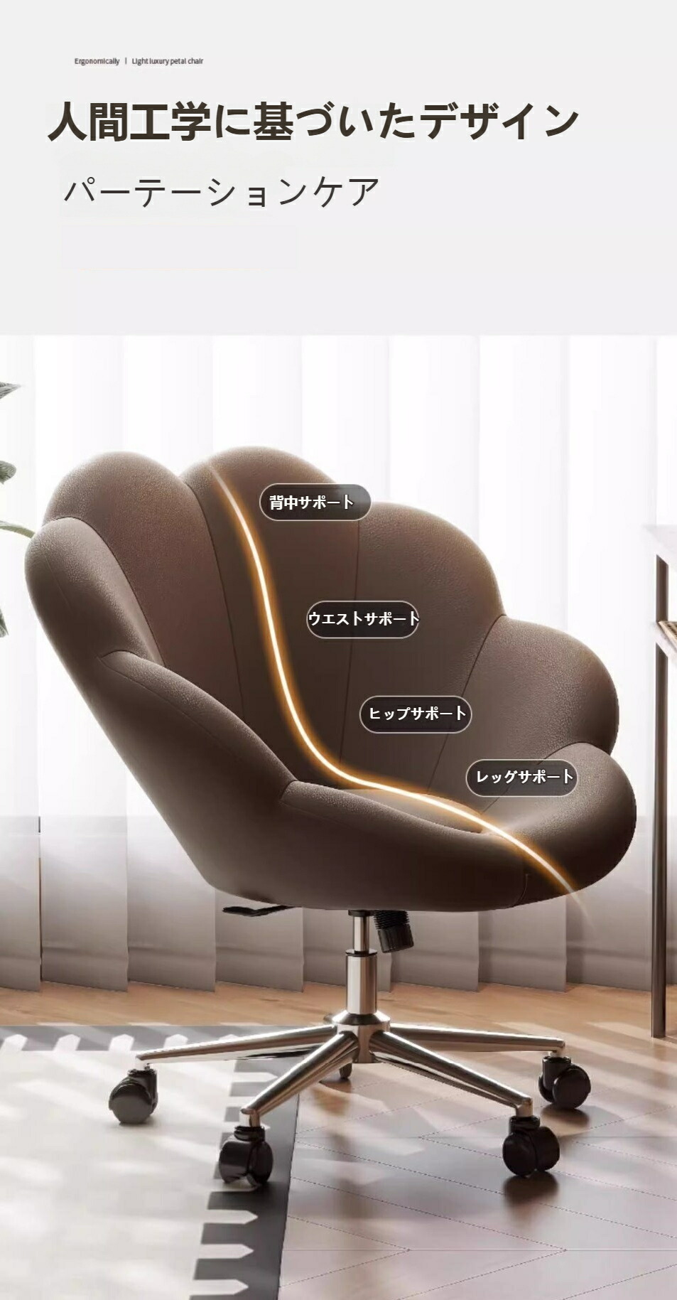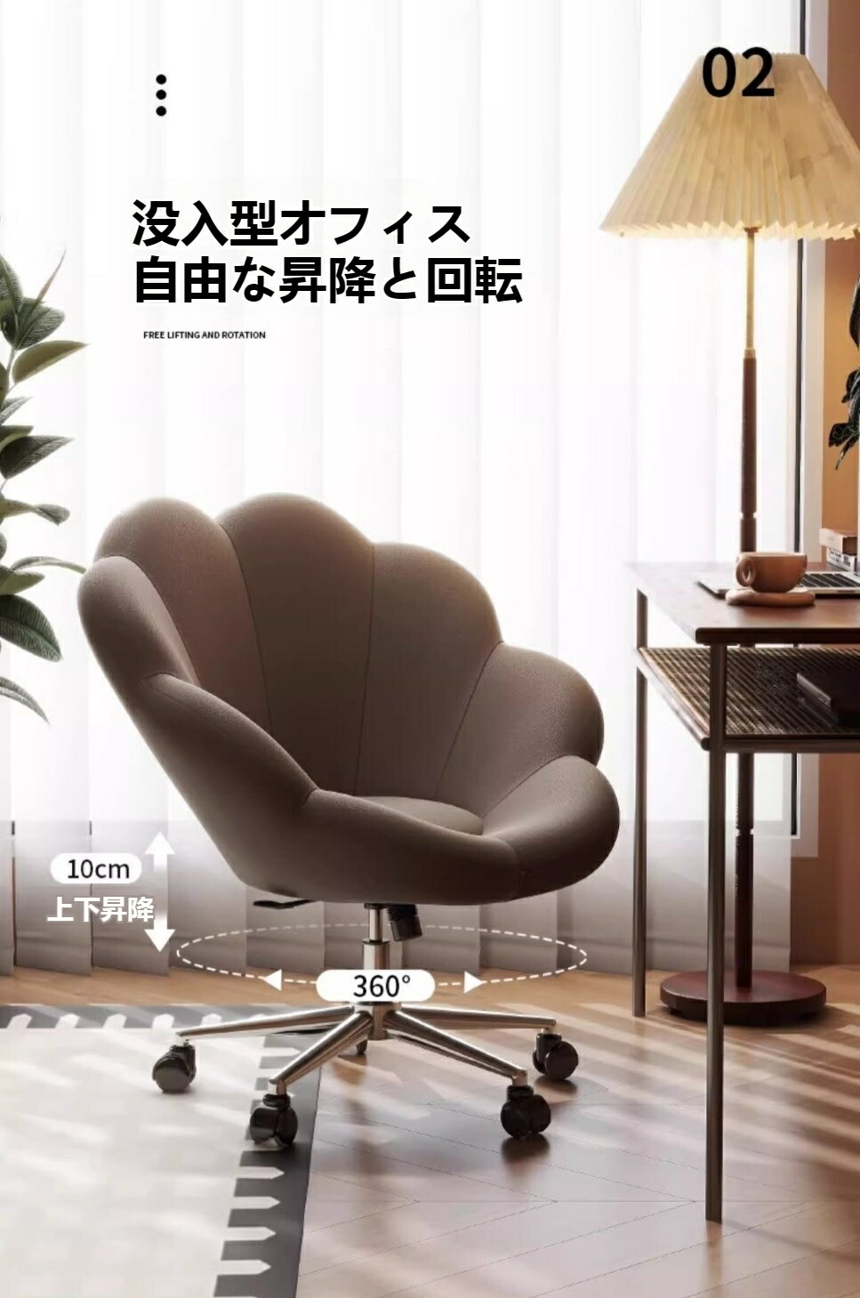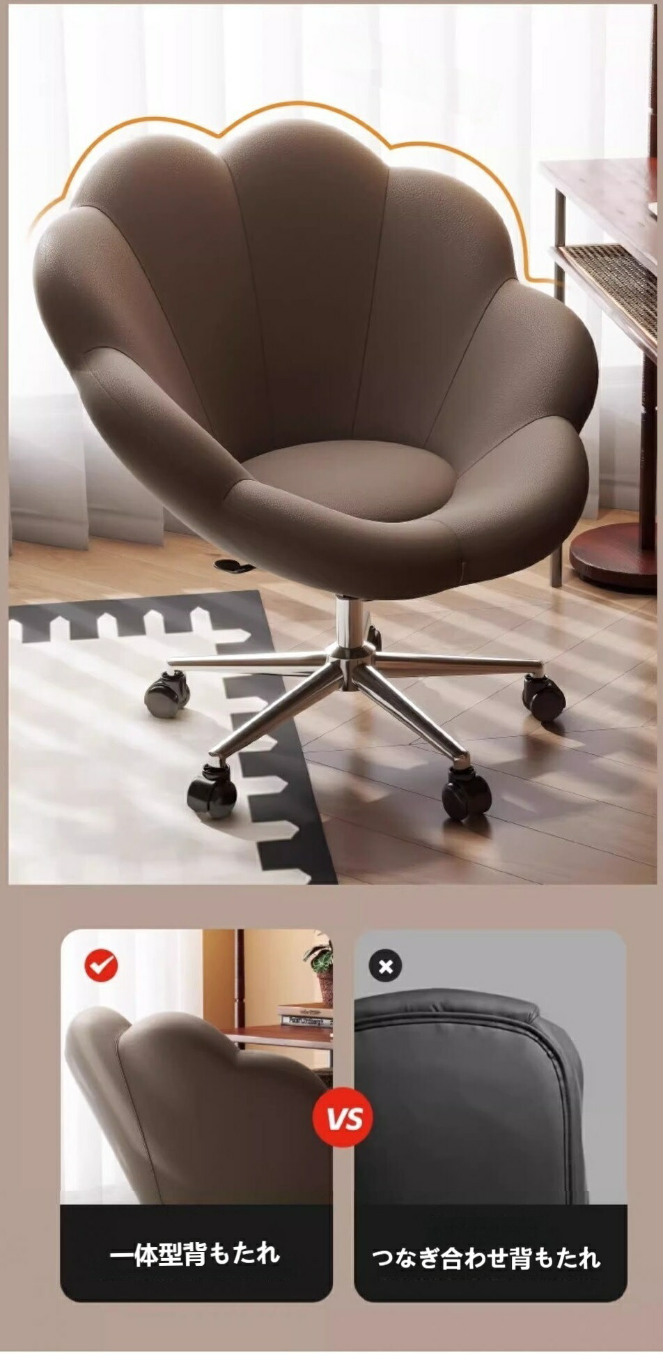 オフィスチェア デスクチェア 椅子 花 ブラウン ベージュ オレンジ シルバー ゴールド