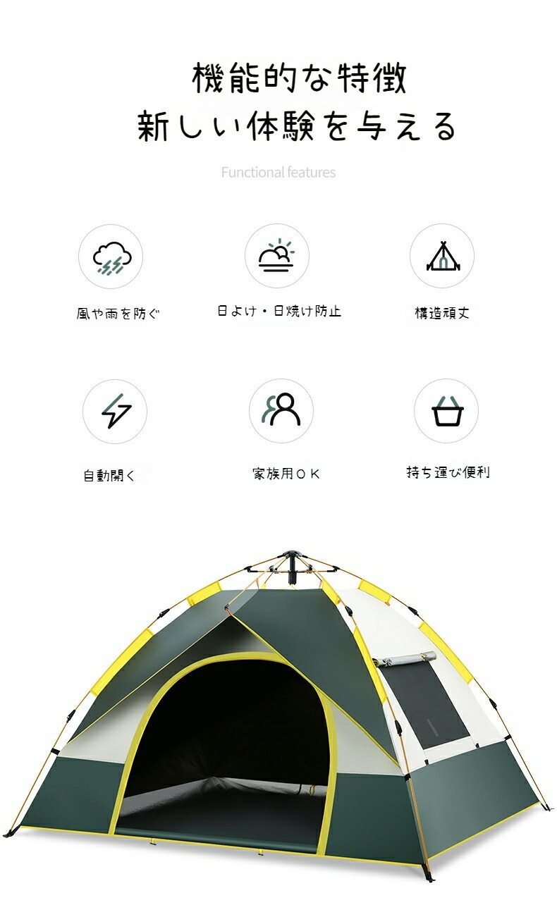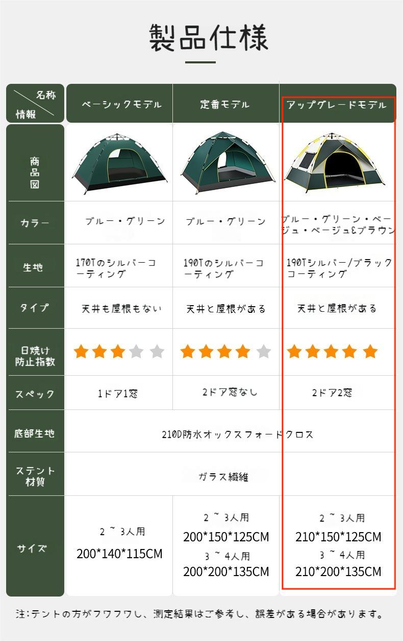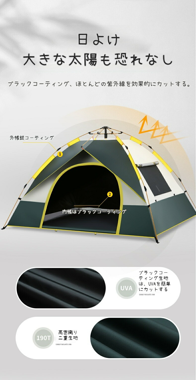 ポップアップテント キャンプ ドーム アウトドア テント タープ テント 人気 ブルー グリーン シルバーコーティング ブラックコーティング