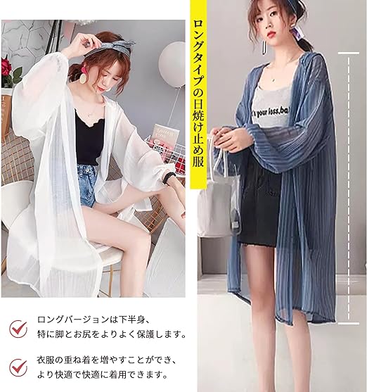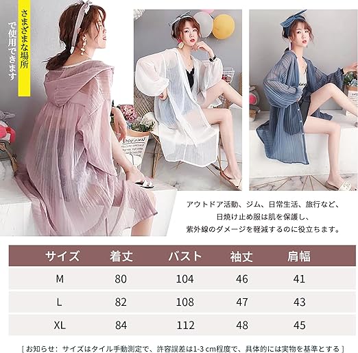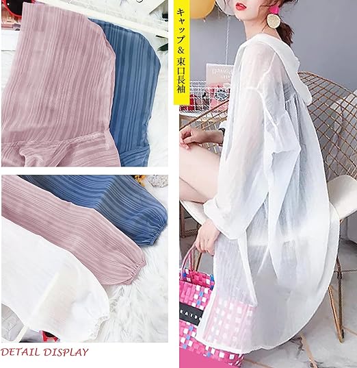 ロングカーディガン レディース UVカ トップス シャツ ブラウス 続々登場 ホワイト ピンク ブルー M L XL