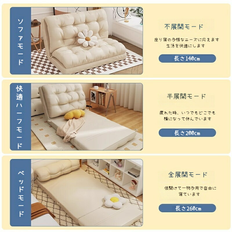 ソファーベッド ソファ 1人掛け 3W ホワイト グレー オレンジ 60cm 90cm 120cm