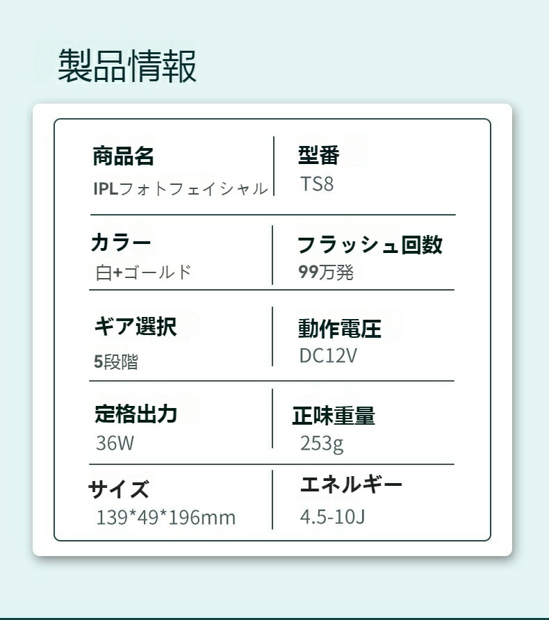 脱毛器 メンズ レディース vio対応 TS8白+ゴールド TS8冷感白+ゴールド