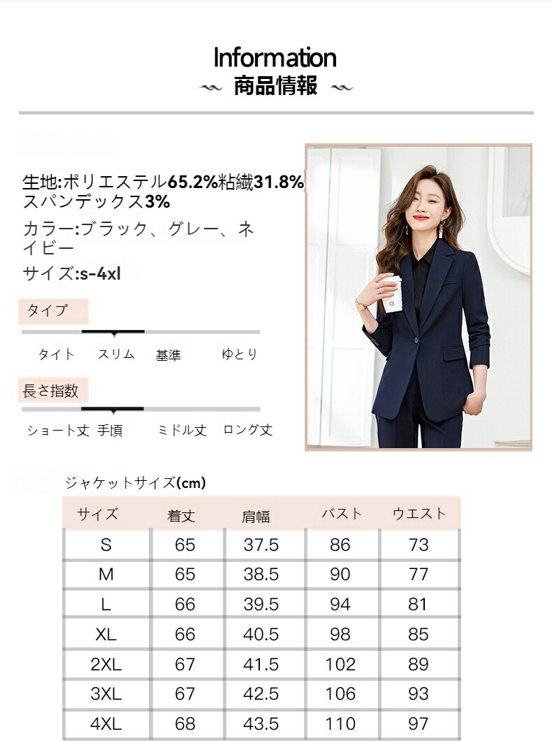 スーツ レディース パンツスーツ スー レディースファッション 通販 ブラック グレー ネイビー M L XL 2XL 3XL