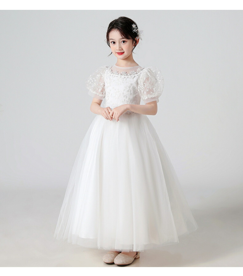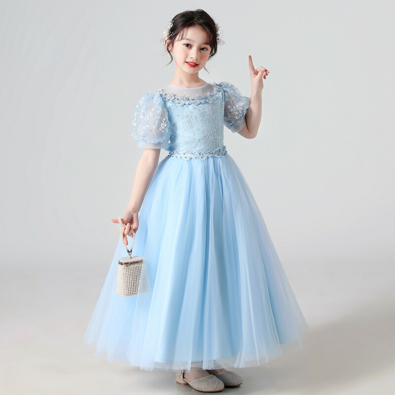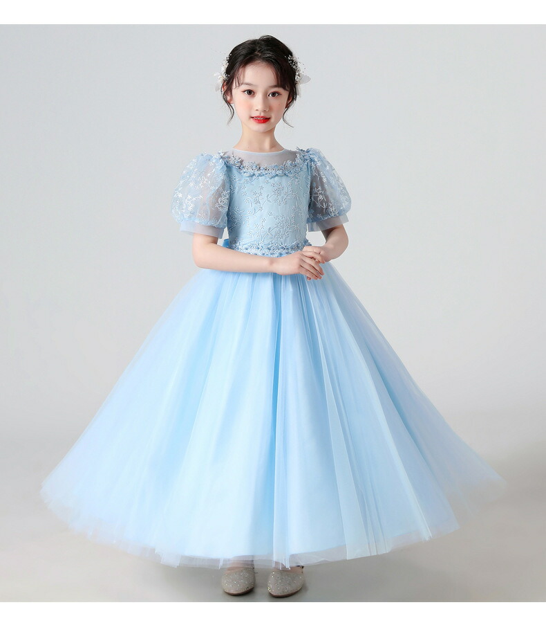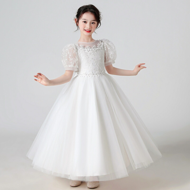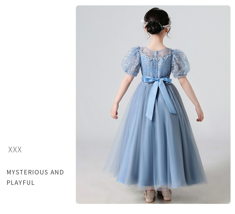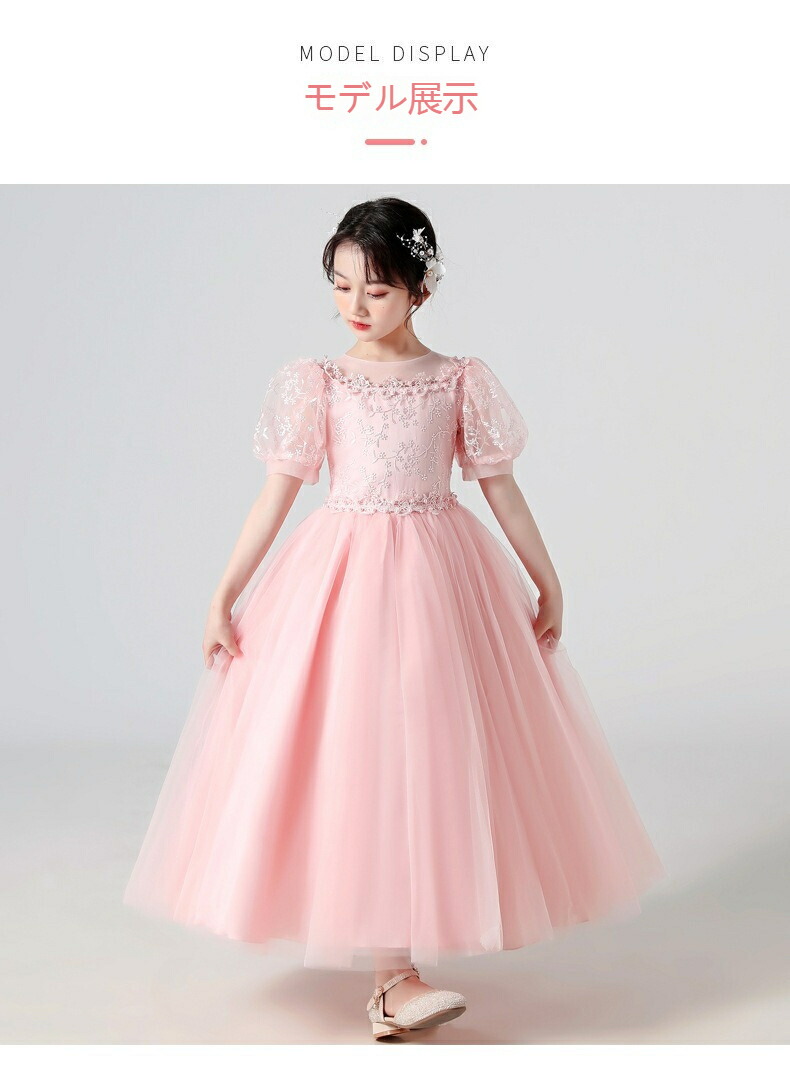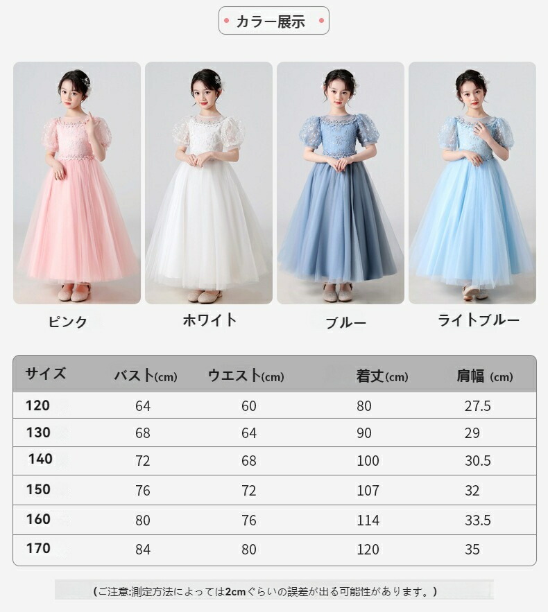 ロングドレス パフスリーブ 子供ドレス キッズ ベビー マタニティ お買い得 ホワイト ピンク ライトブルー ブルー 120cm 130cm 140cm 150cm 160cm 170cm