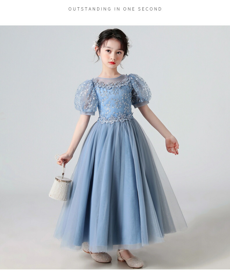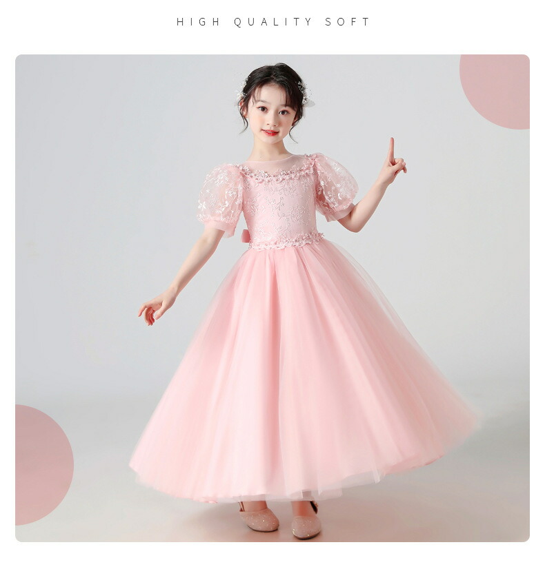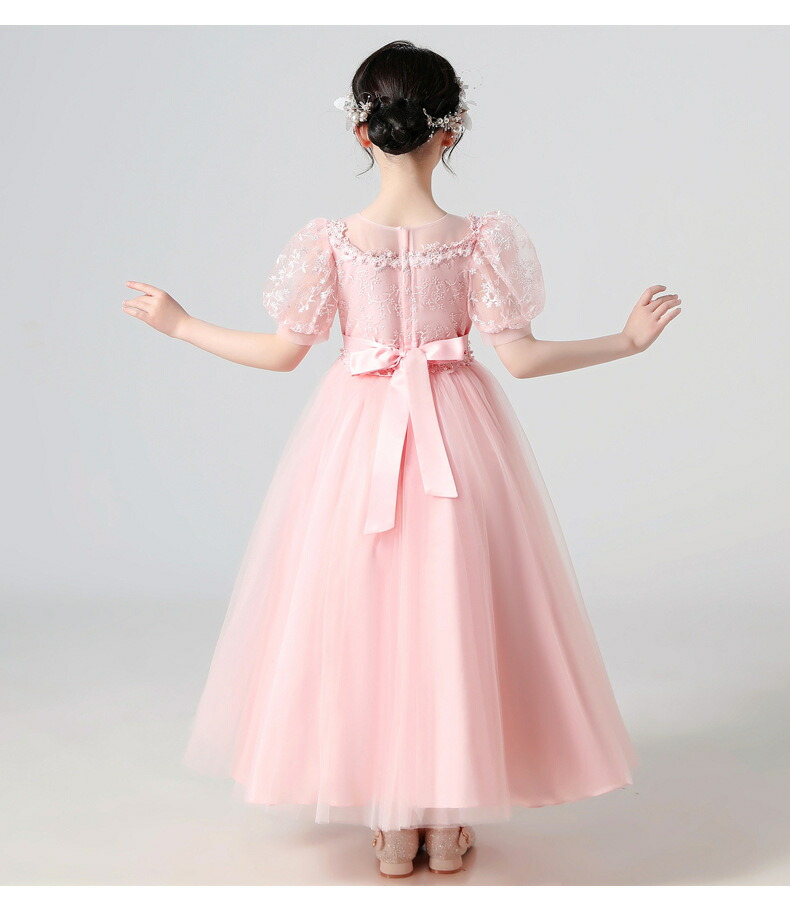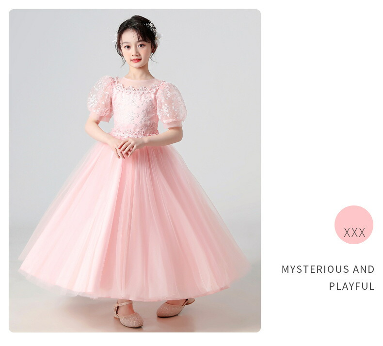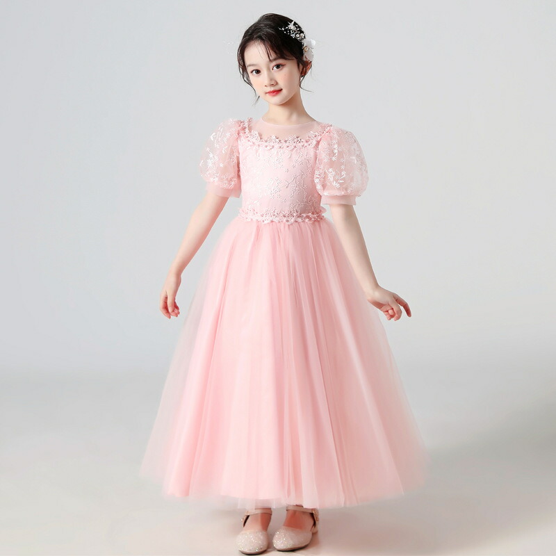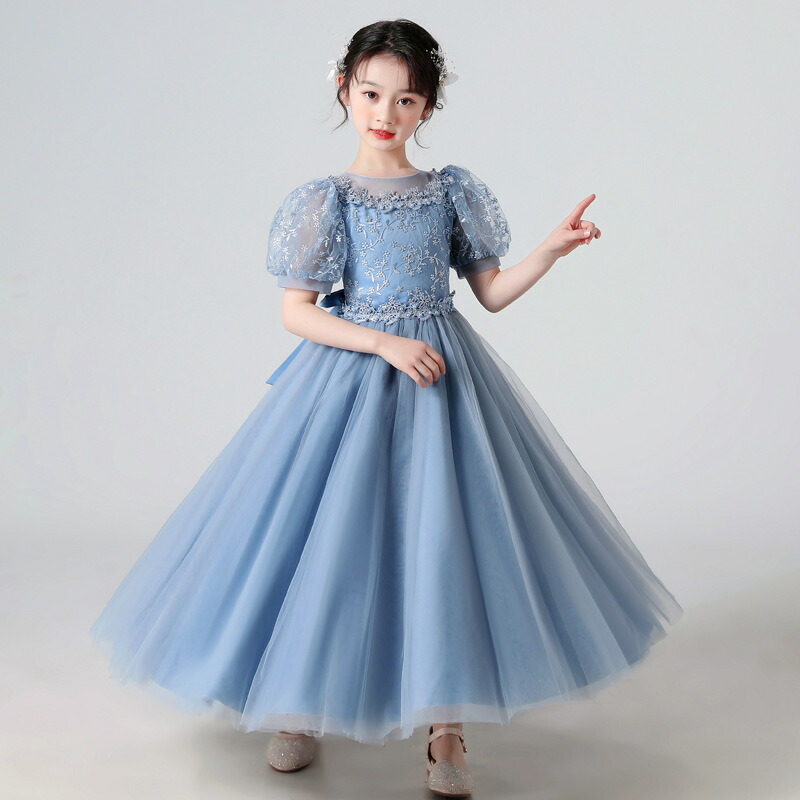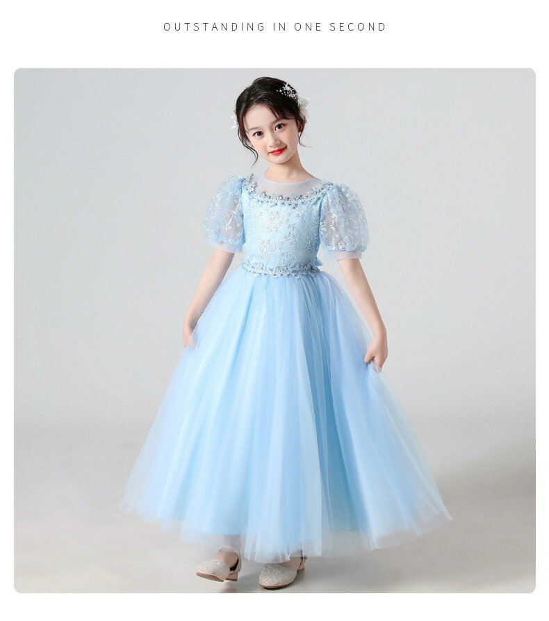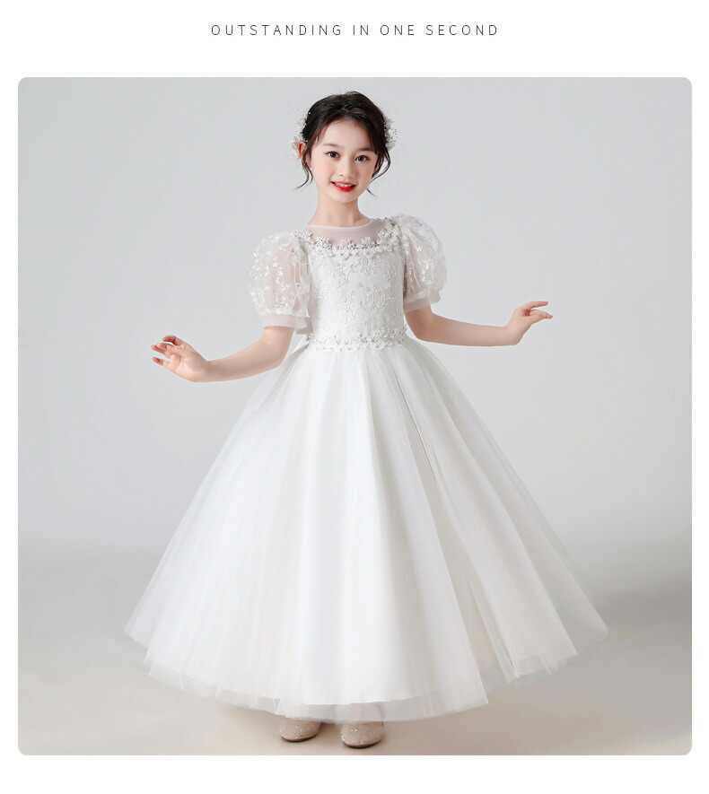 ロングドレス パフスリーブ 子供ドレス キッズ ベビー マタニティ お買い得 ホワイト ピンク ライトブルー ブルー 120cm 130cm 140cm 150cm 160cm 170cm