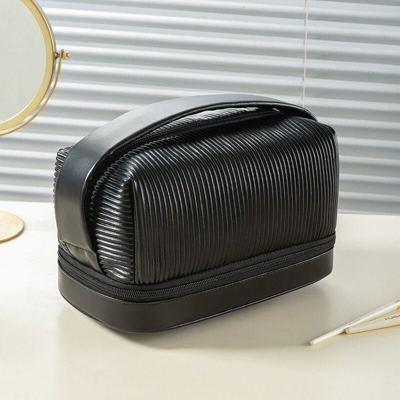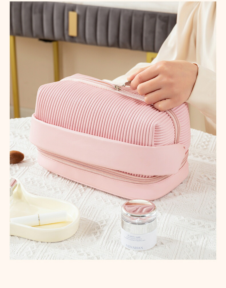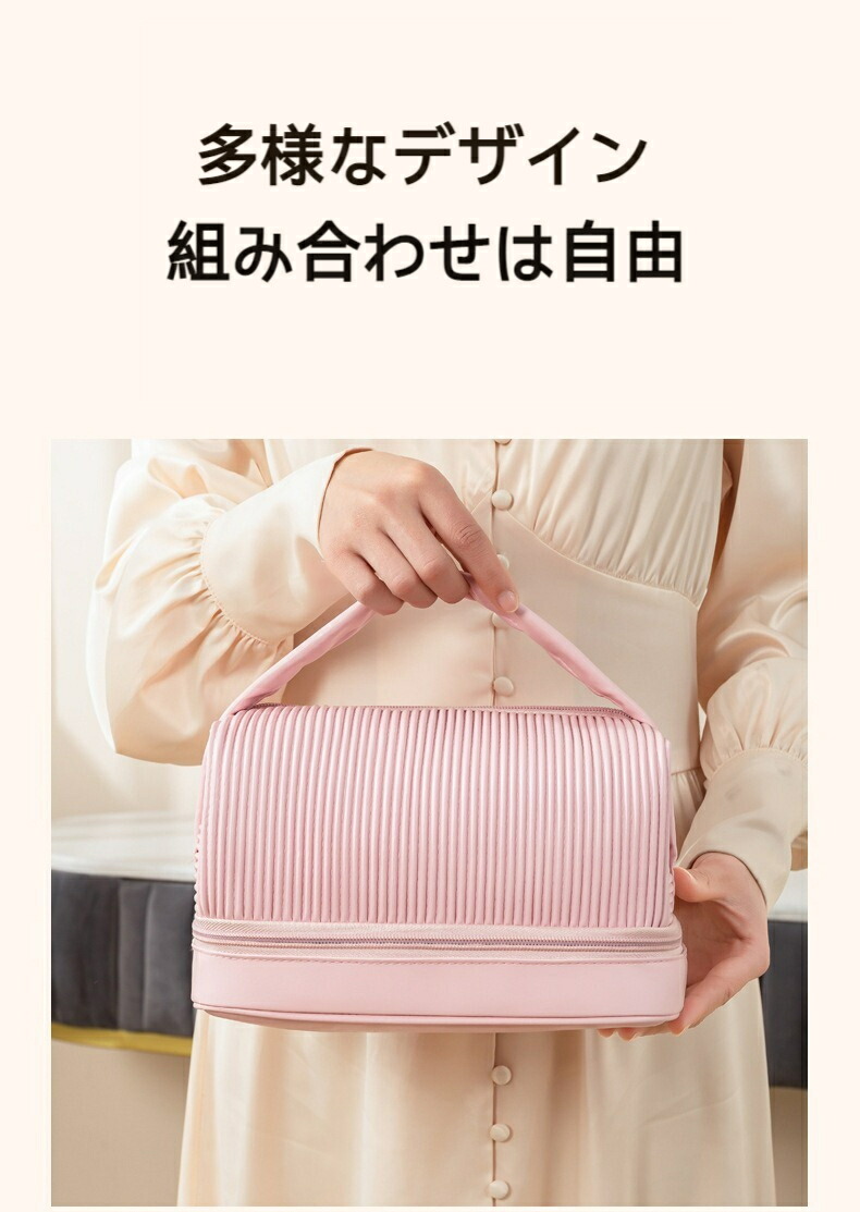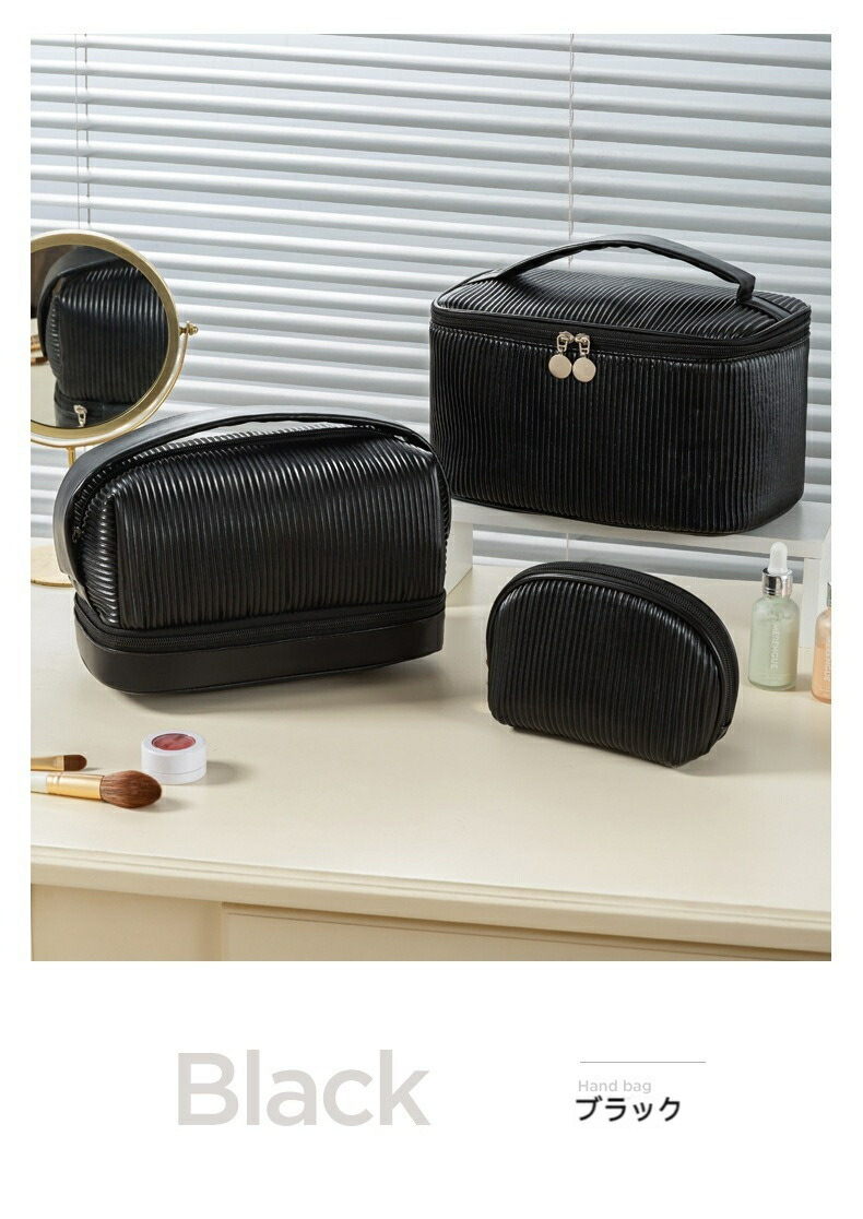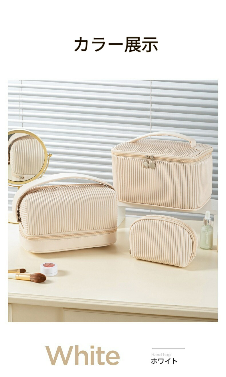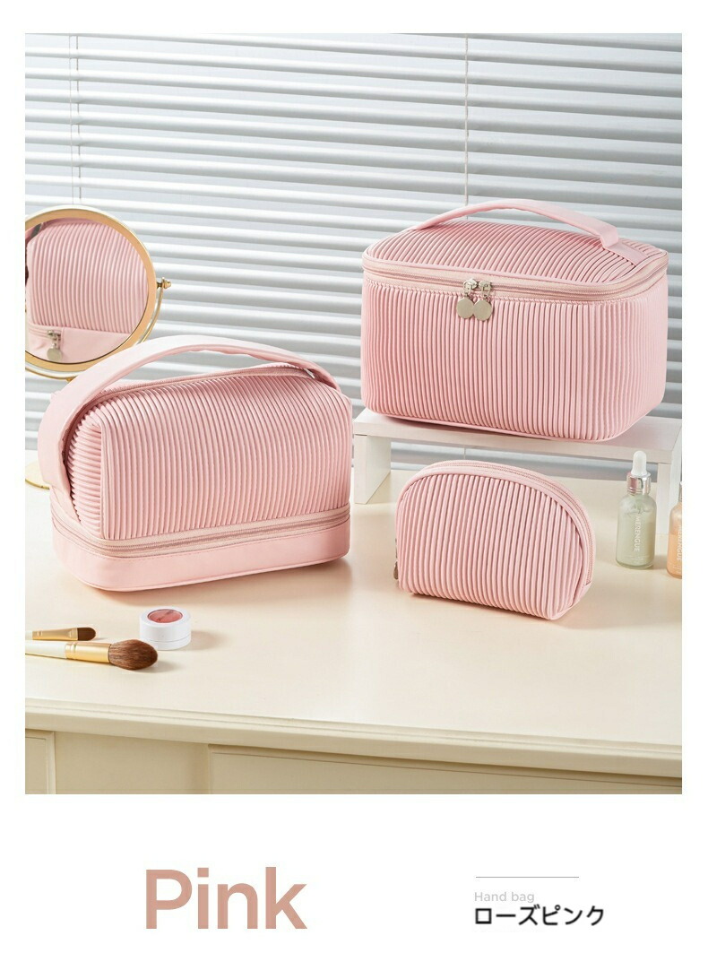化粧ポーチ かわいい メイクポーチ 化 バッグ 小物 ブランド雑貨 続々登場 半円型 二層構造 円筒型 3点セット ホワイト ローズピンク ライトブルー ブラック