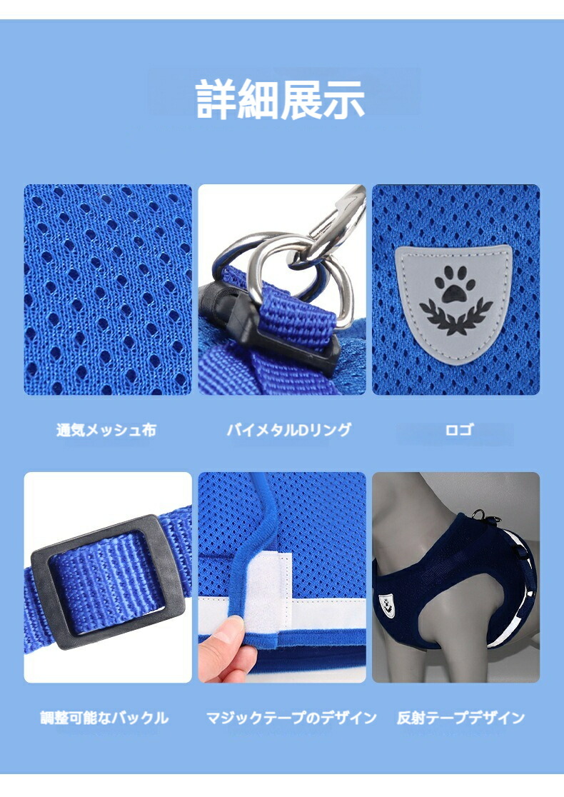 犬用 ハーネス メッシュ 胴輪 反射テ ペット ペットグッズ 豊富な品揃え ブルー ブラック レッド グレー XS S M L XL