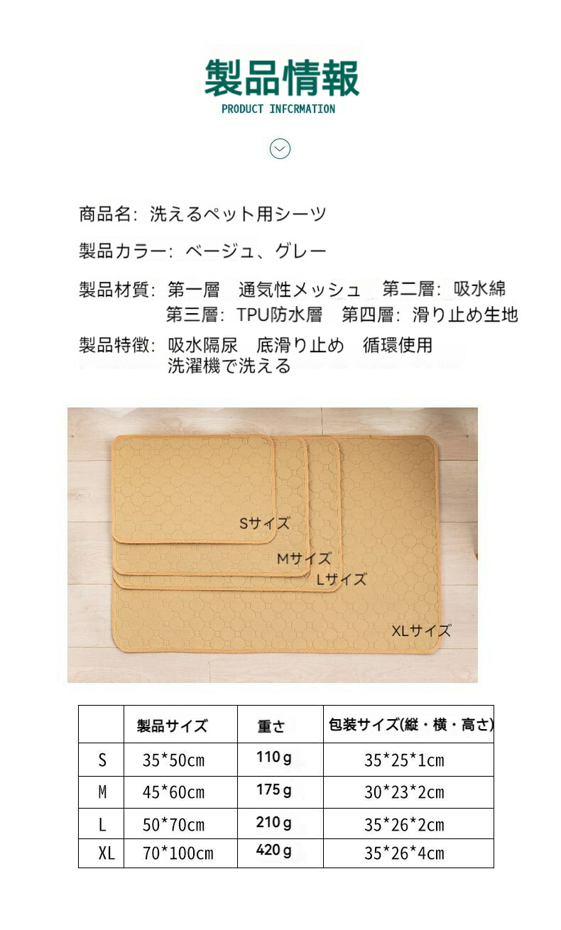 洗えるペットシーツ 洗える 滑り止め 犬用品 トイレ用品 ペットシーツ 割引 シルバーホワイト グレー ベージュ XS(30x30cm) S(35×50cm) M(45×60cm) L(50×70cm) XL(70×100cm) XXL(90×140cm)