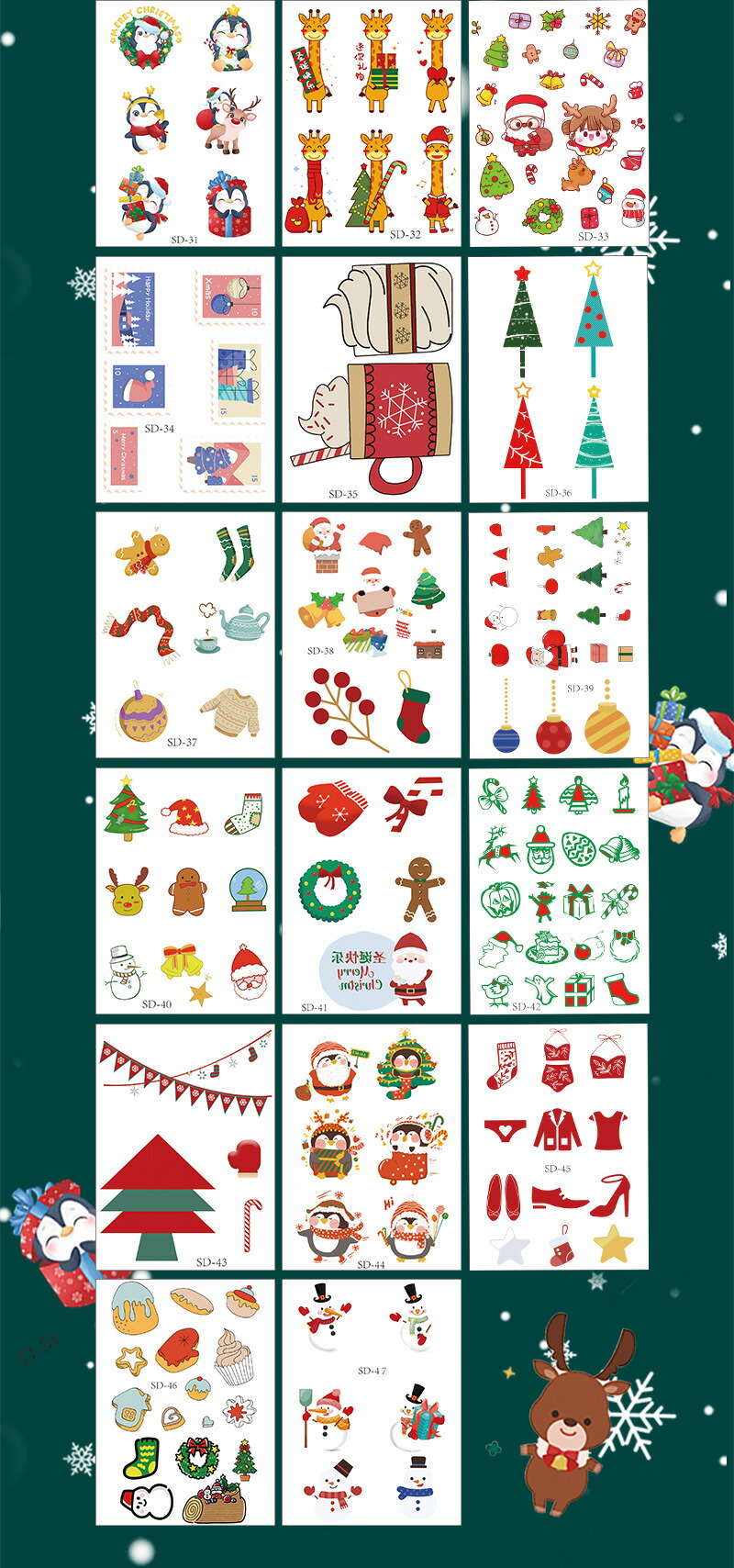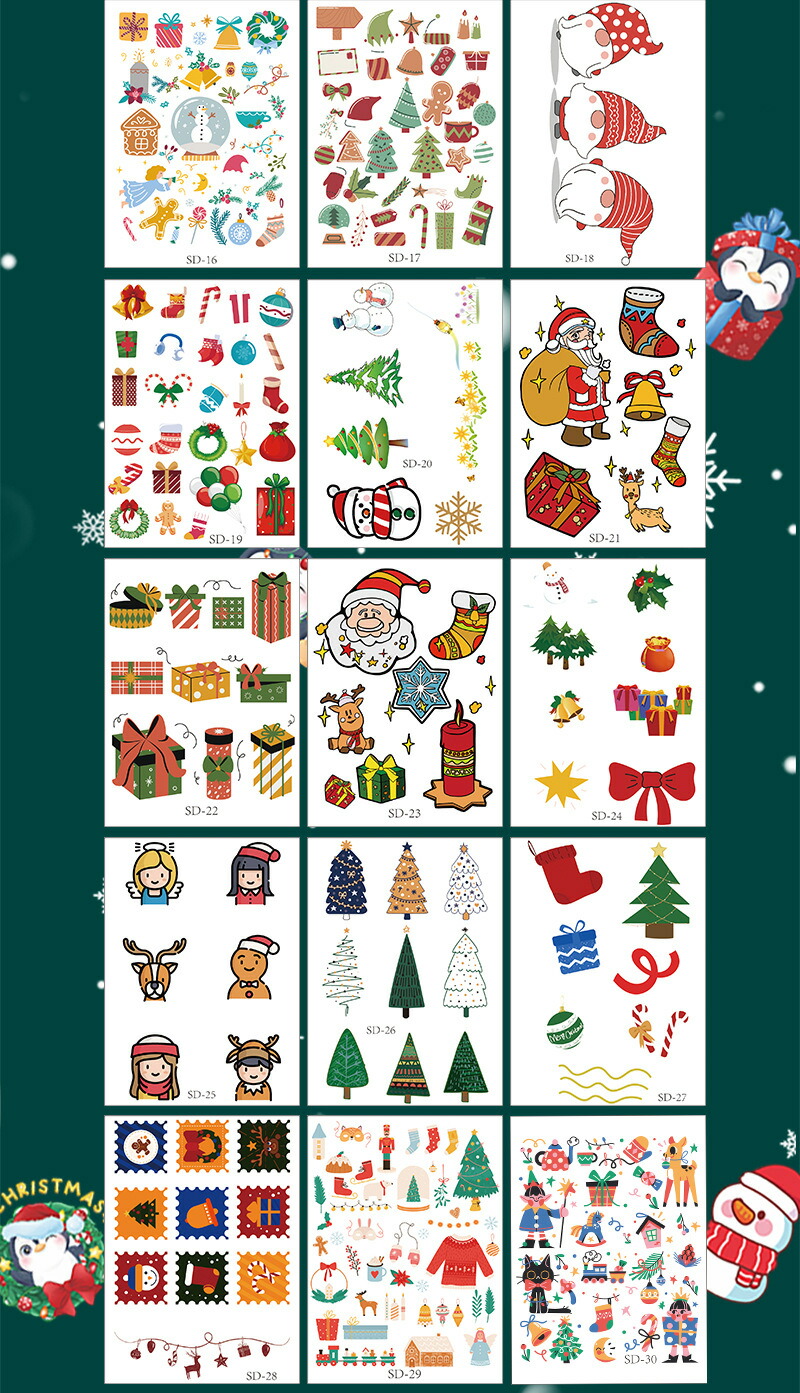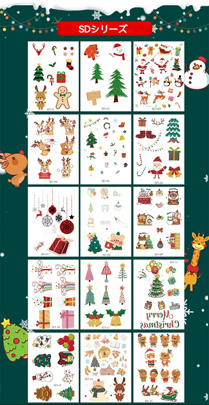 クリスマス フェイスシール 子供 10 タイプ1(10枚セット) タイプ2(10枚セット) タイプ3(15枚セット) タイプ4(15枚セット) タイプ5(17枚セット)