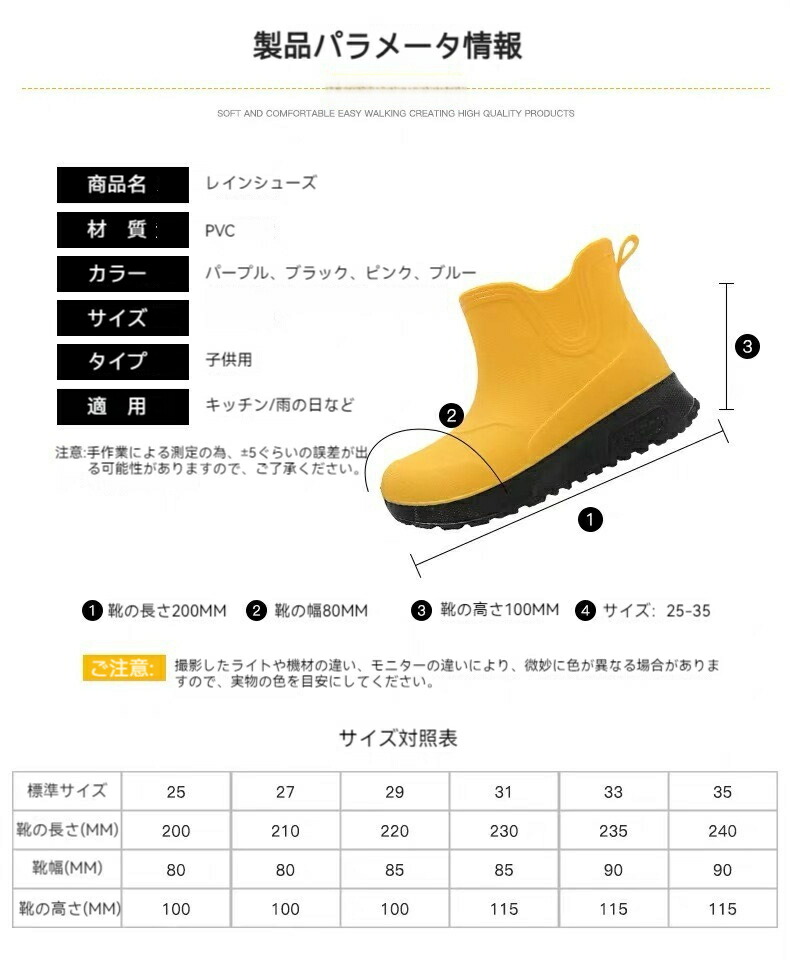 レインブーツ キッズ レインシューズ キッズ 靴 レインシューズ 長靴 お買い得 ピンク パープル ブラック ブルー 25 27 29 31 33 35