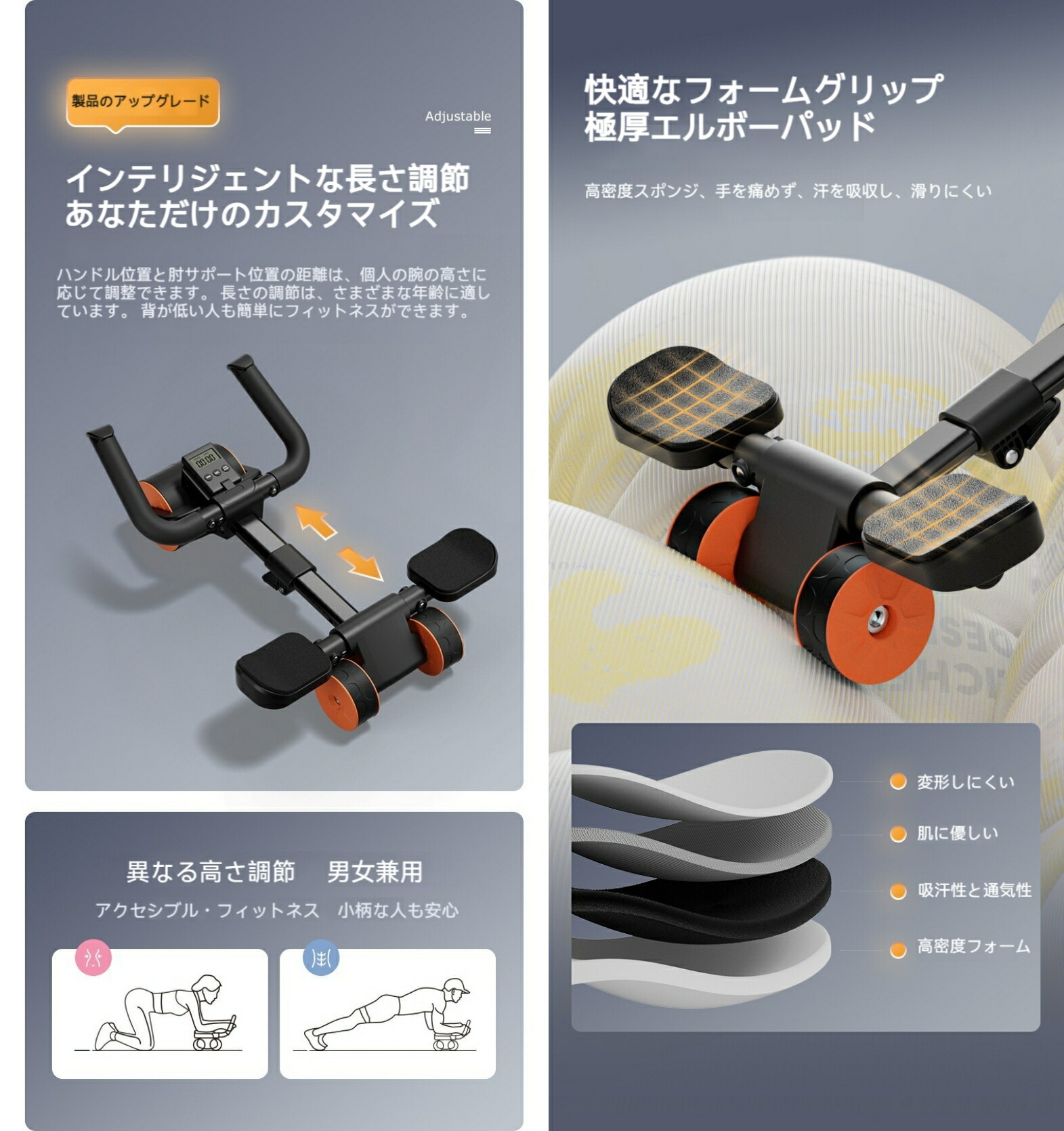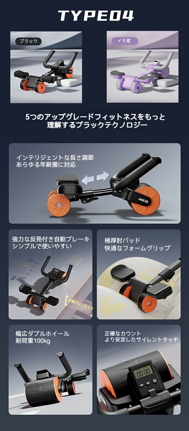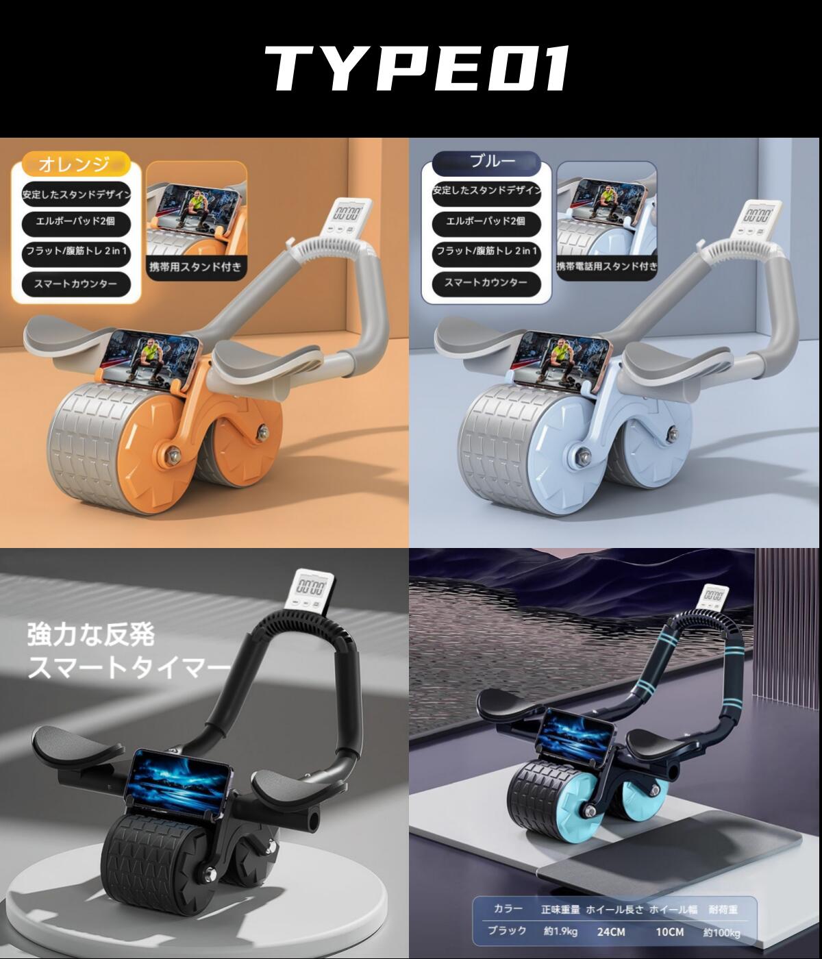 腹筋ローラー アブローラー 腹筋 きん TYPE01 TYPE02 TYPE03 TYPE04 オレンジ ブルー ブラック ブルー&ブラック ピンク イモ紫 グレー