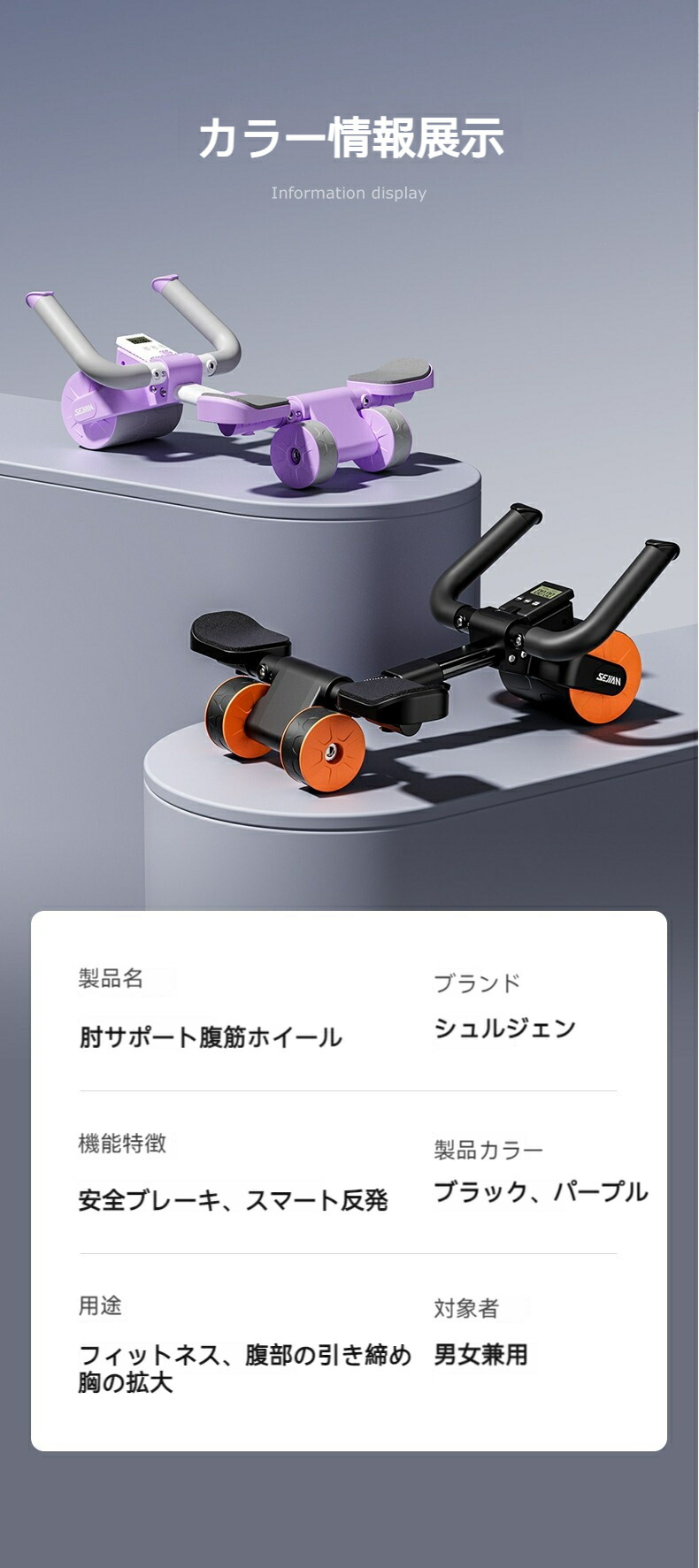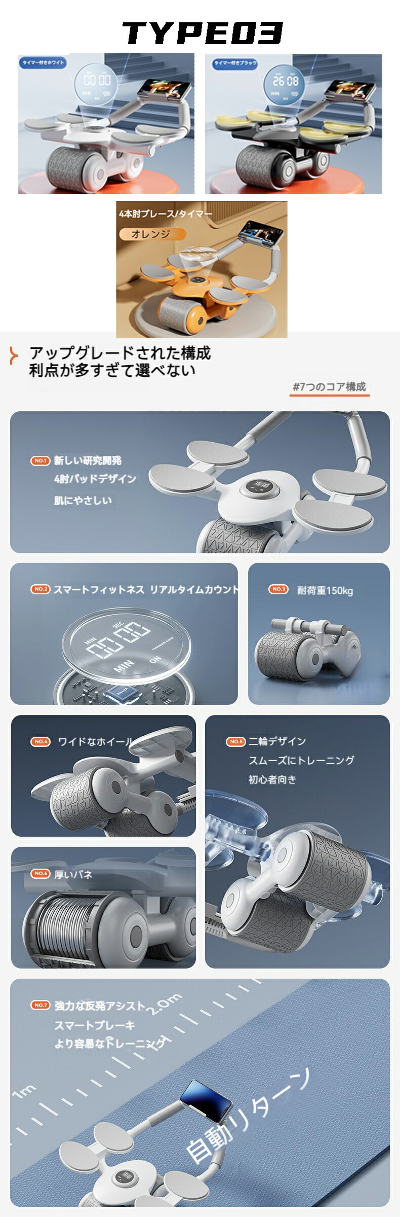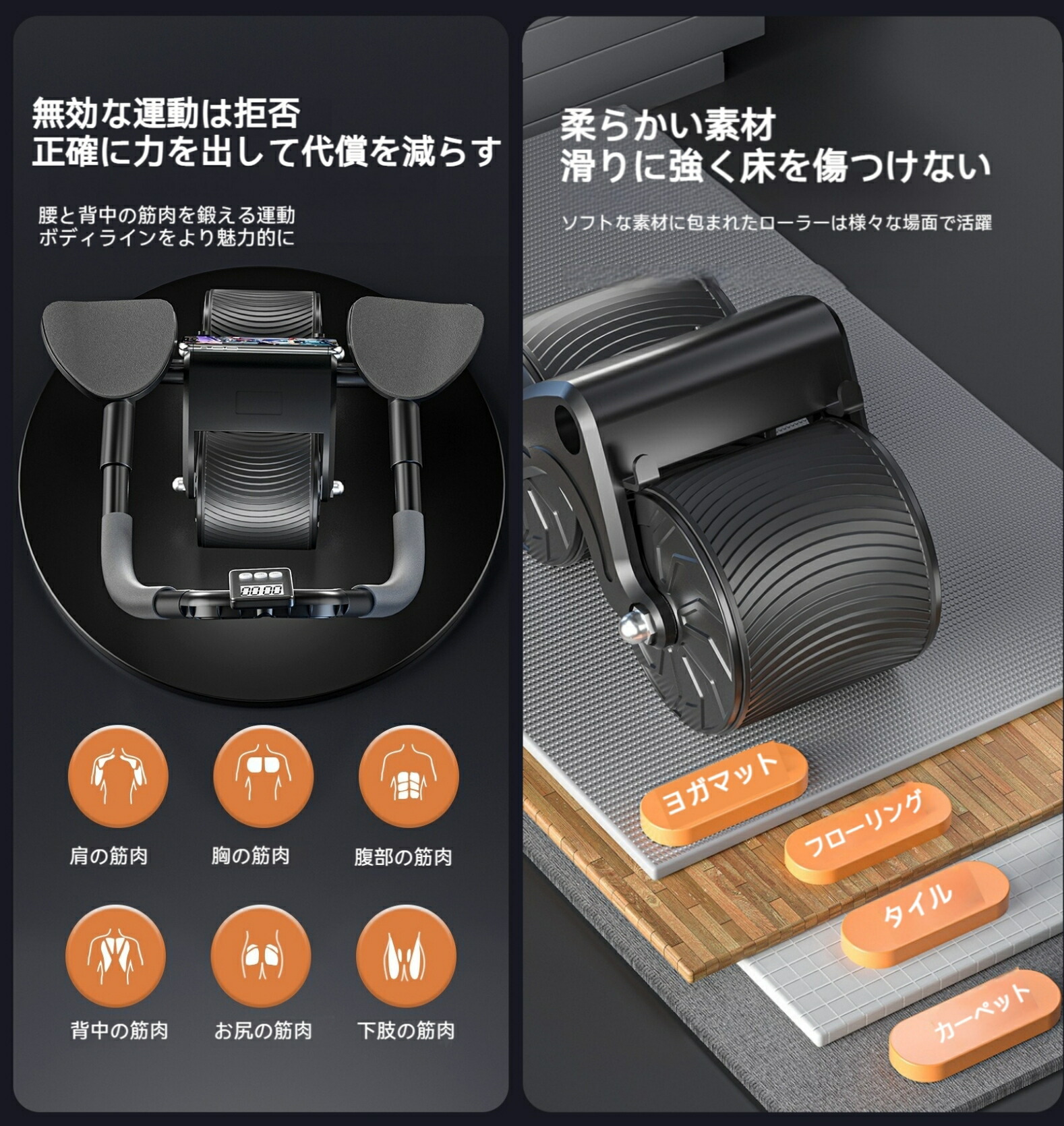 腹筋ローラー アブローラー 腹筋 きん TYPE01 TYPE02 TYPE03 TYPE04 オレンジ ブルー ブラック ブルー&ブラック ピンク イモ紫 グレー