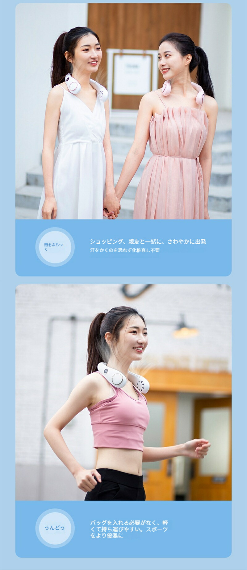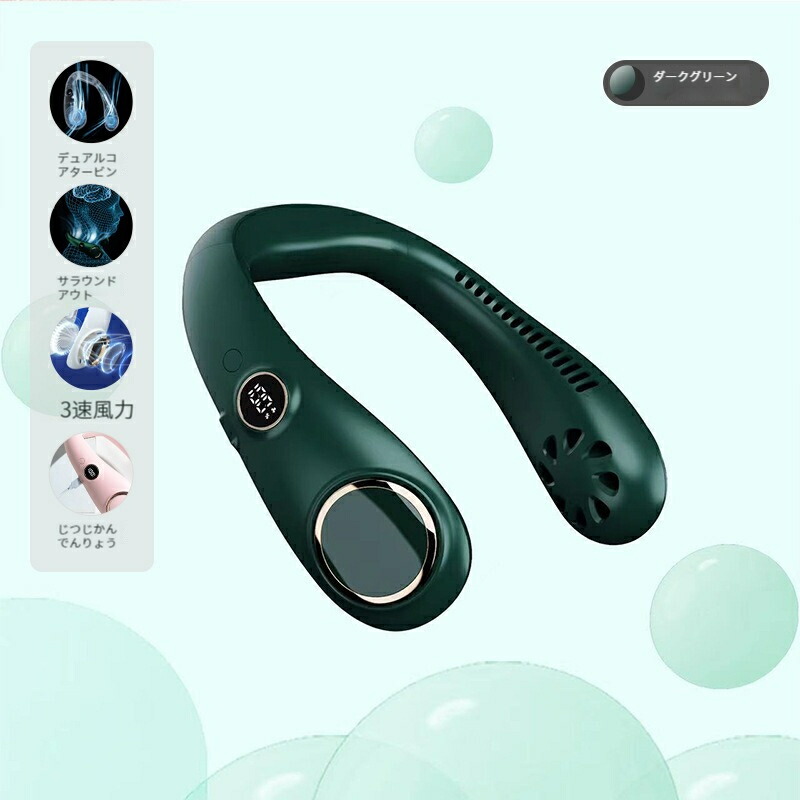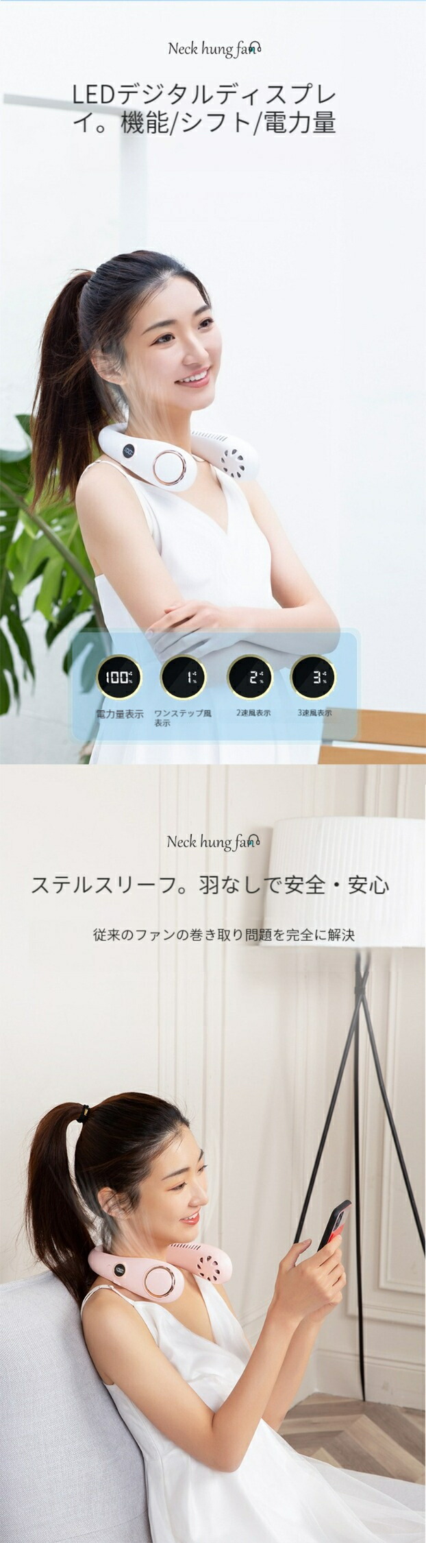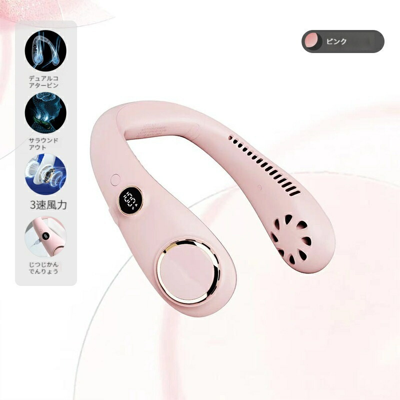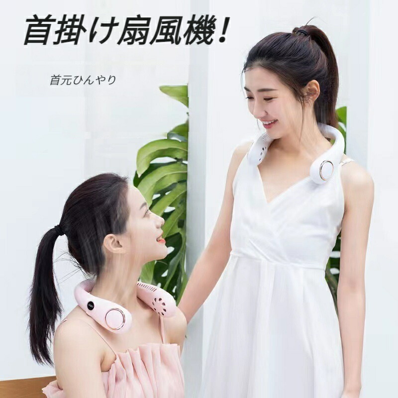 首掛け扇風機 首かけ扇風機 羽なし 扇 ホワイト ピンク ダークグリーン グリーン