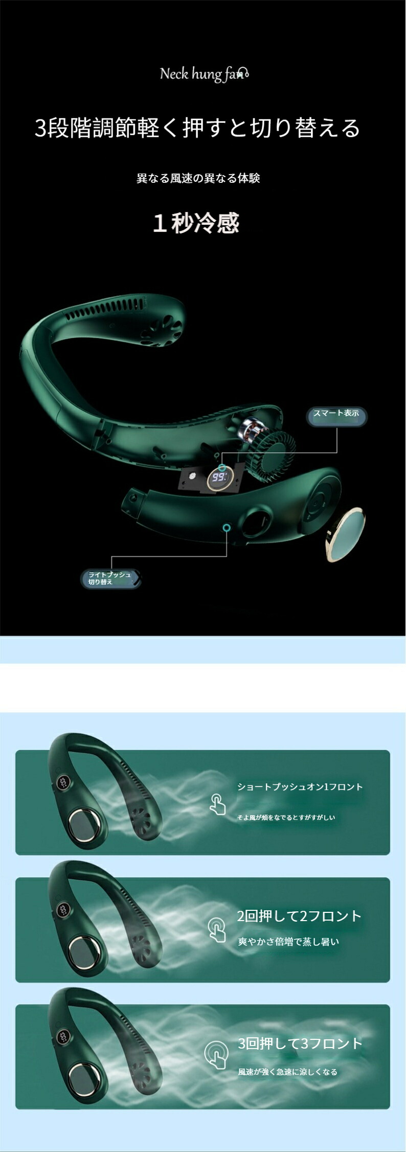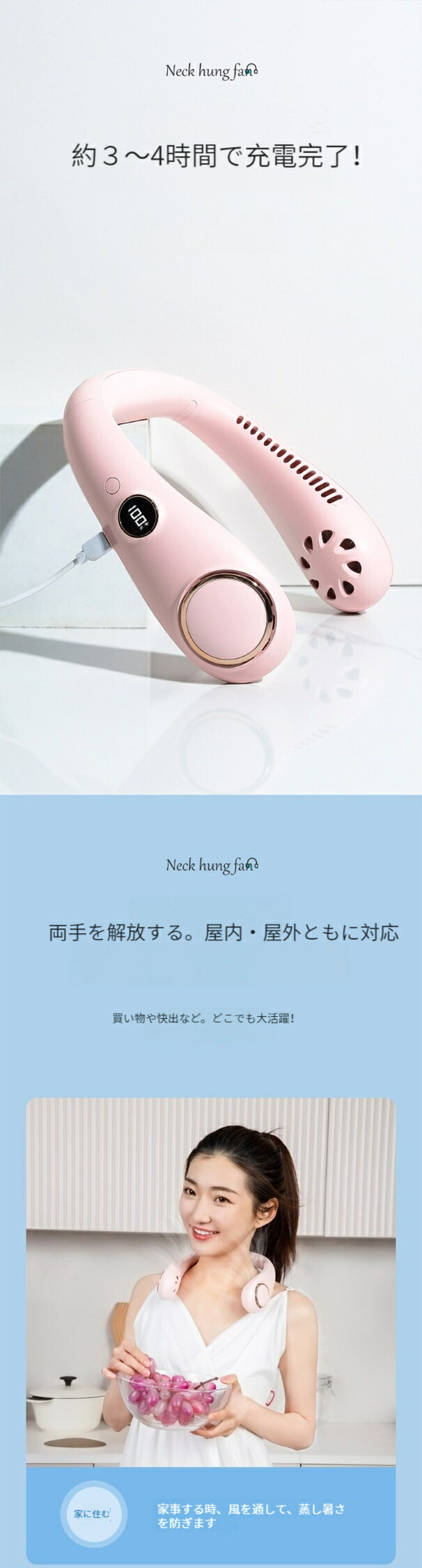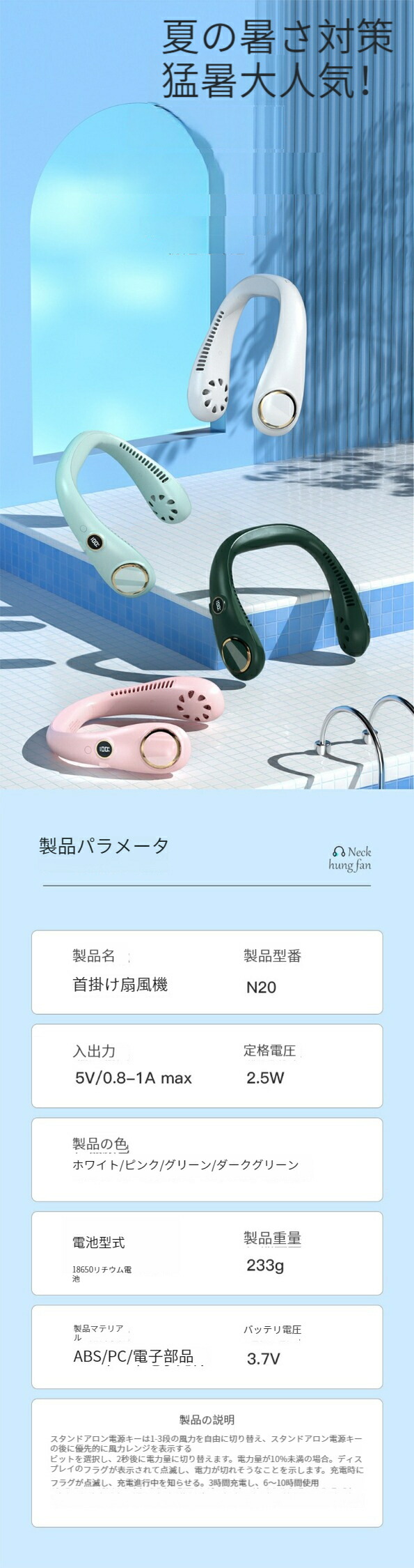 首掛け扇風機 首かけ扇風機 羽なし 扇 ホワイト ピンク ダークグリーン グリーン