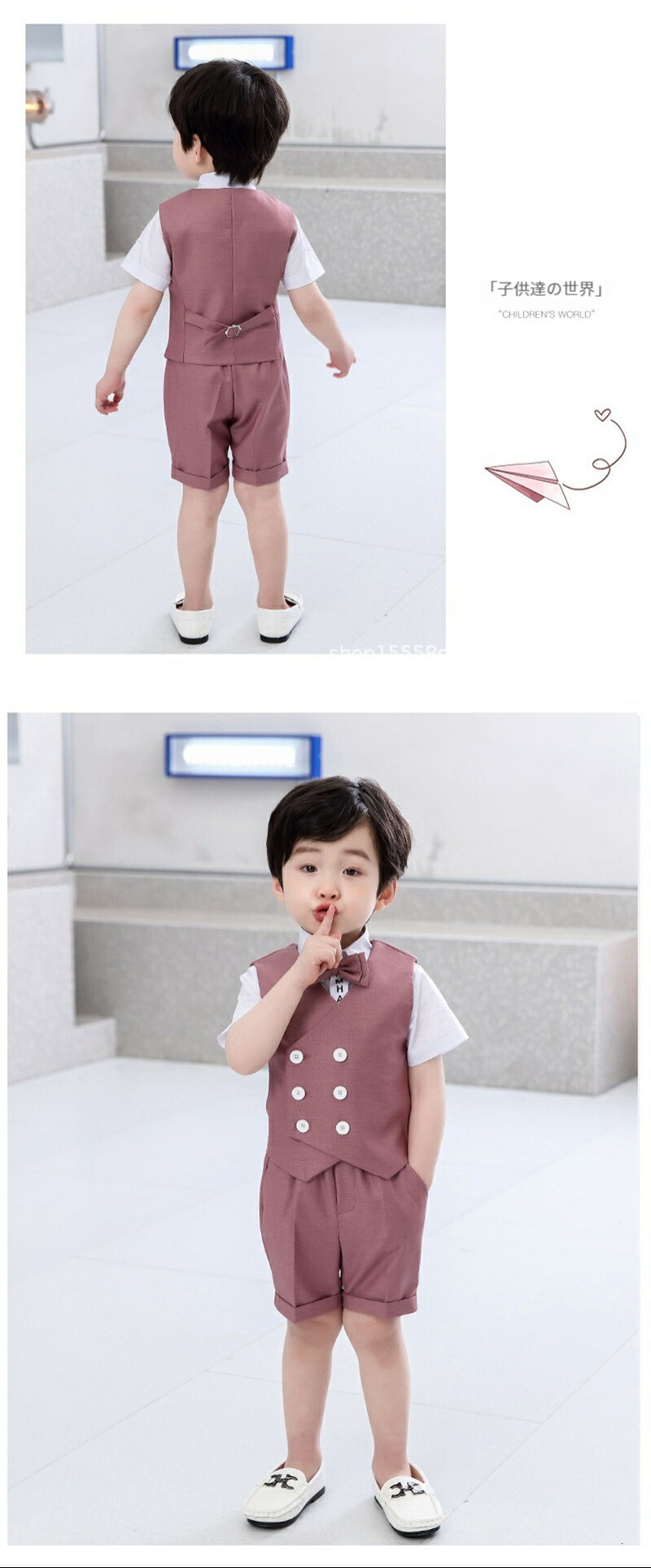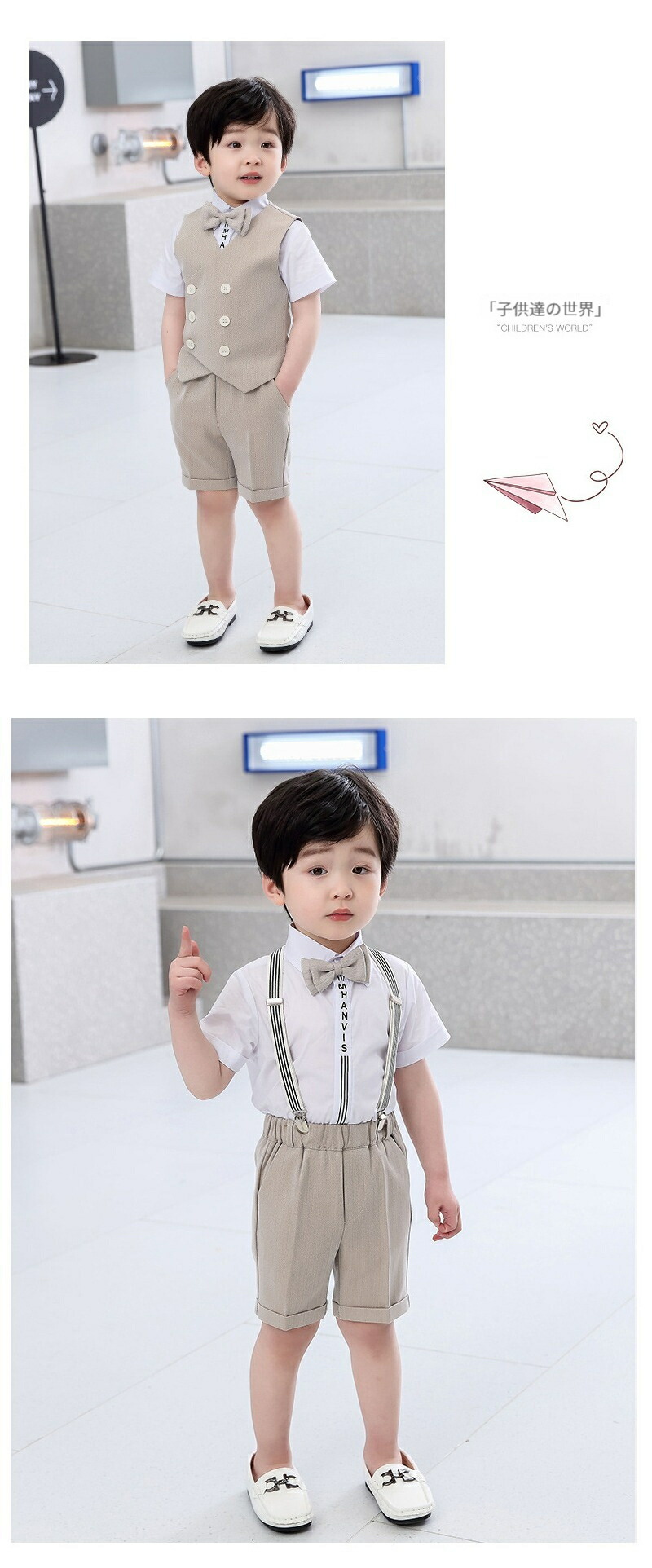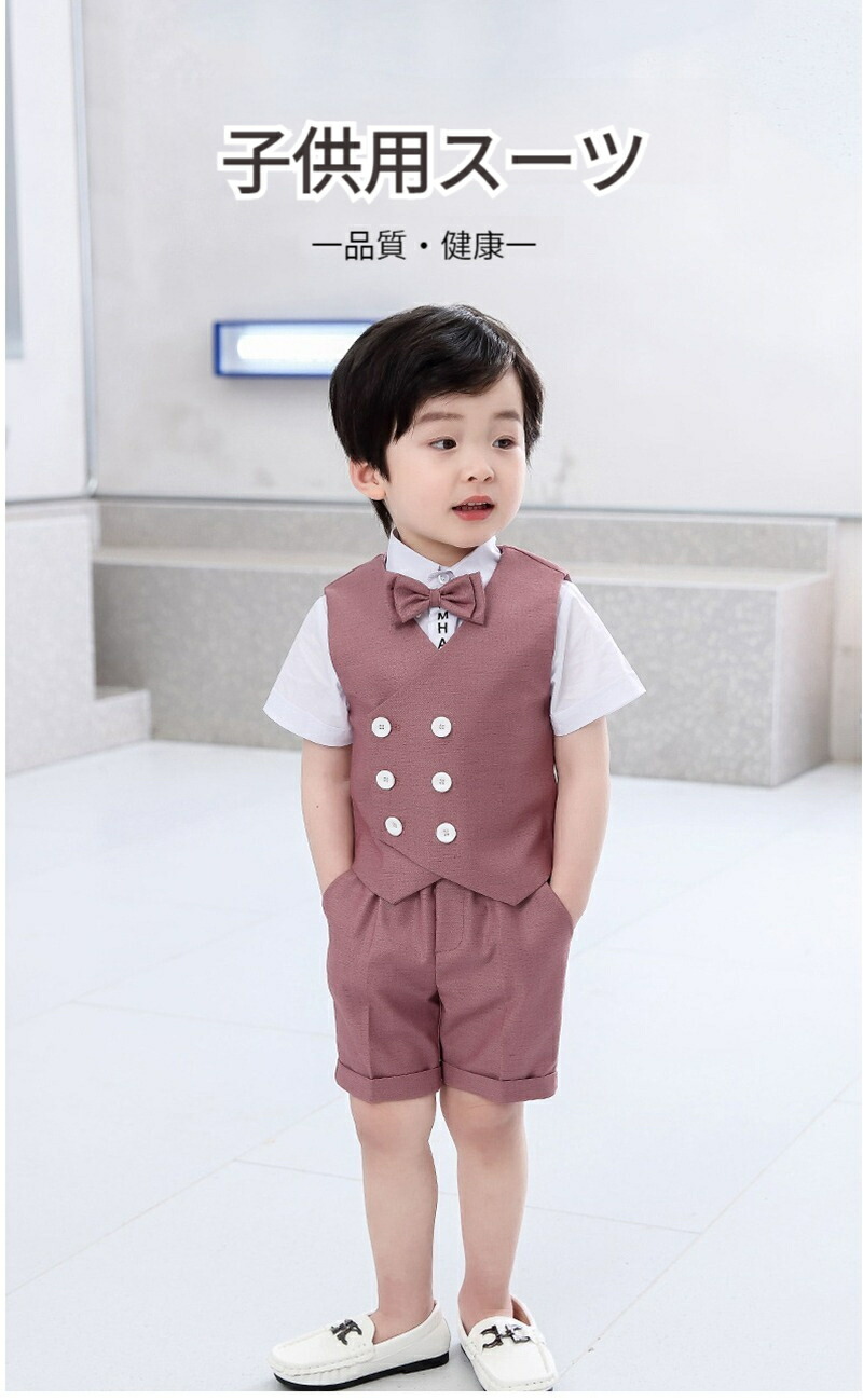 子供スーツ ベスト 半ズボン 蝶ネクタ キッズ ベビー マタニティ 特集 ベージュ パープル 80 90 100 110 120 130 140 150 160