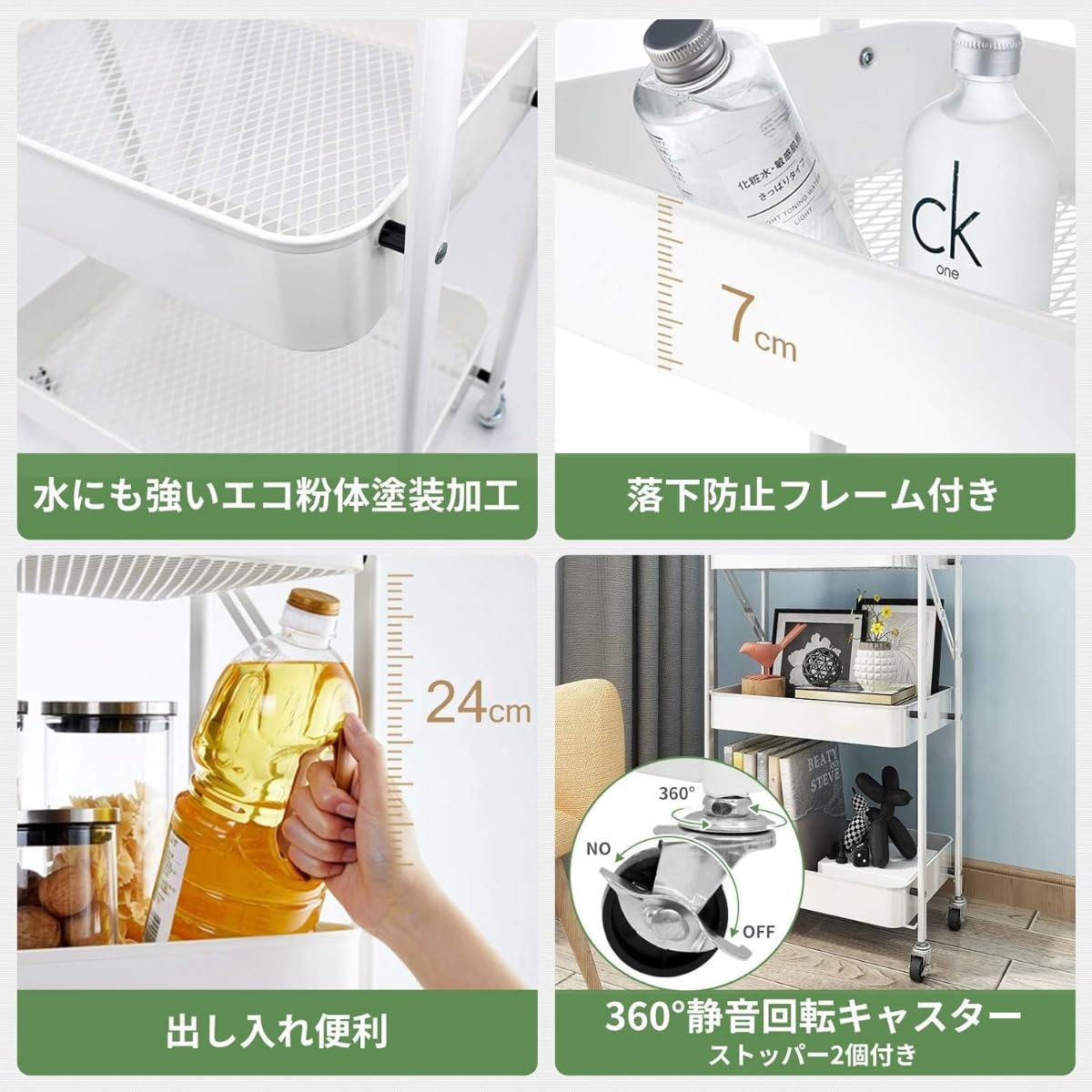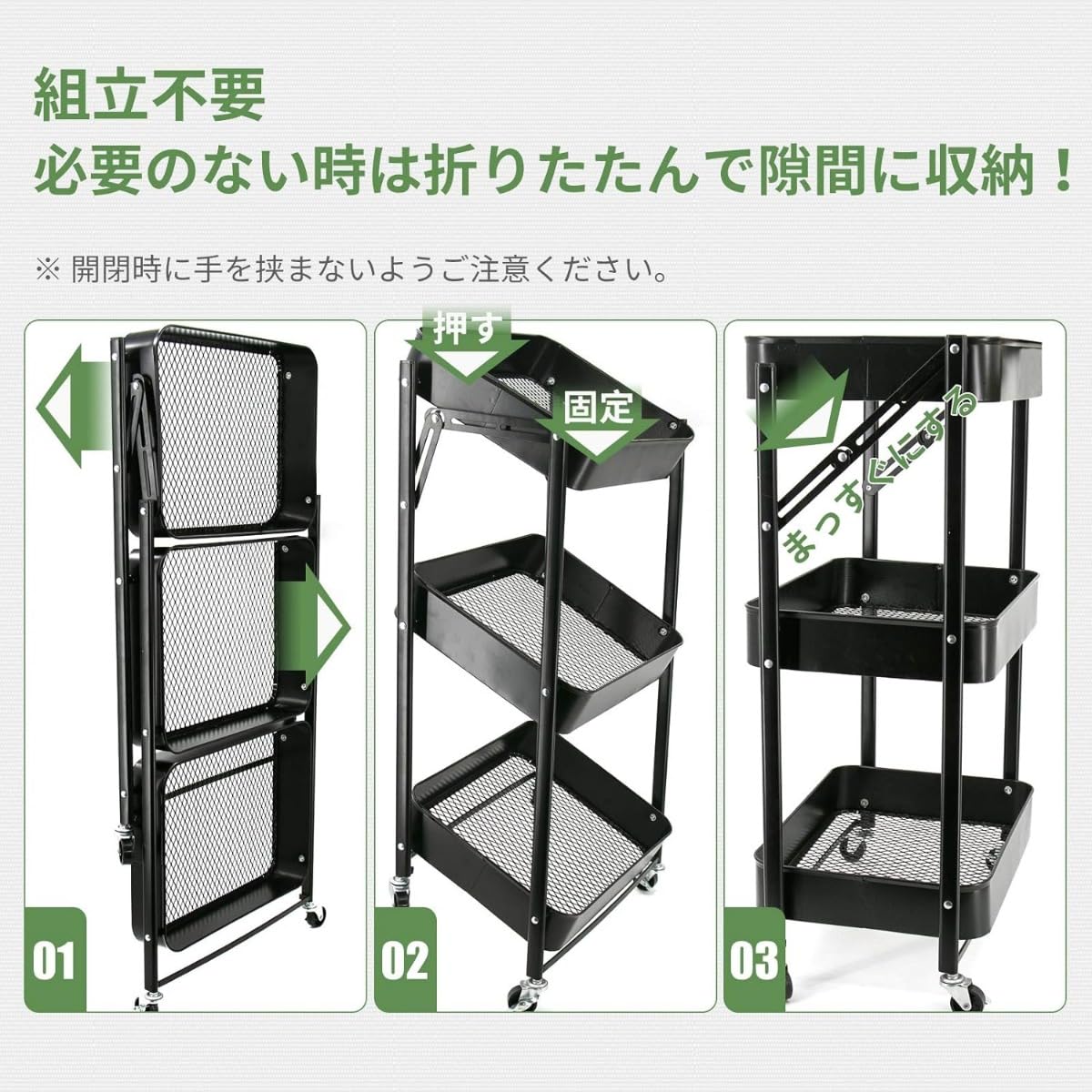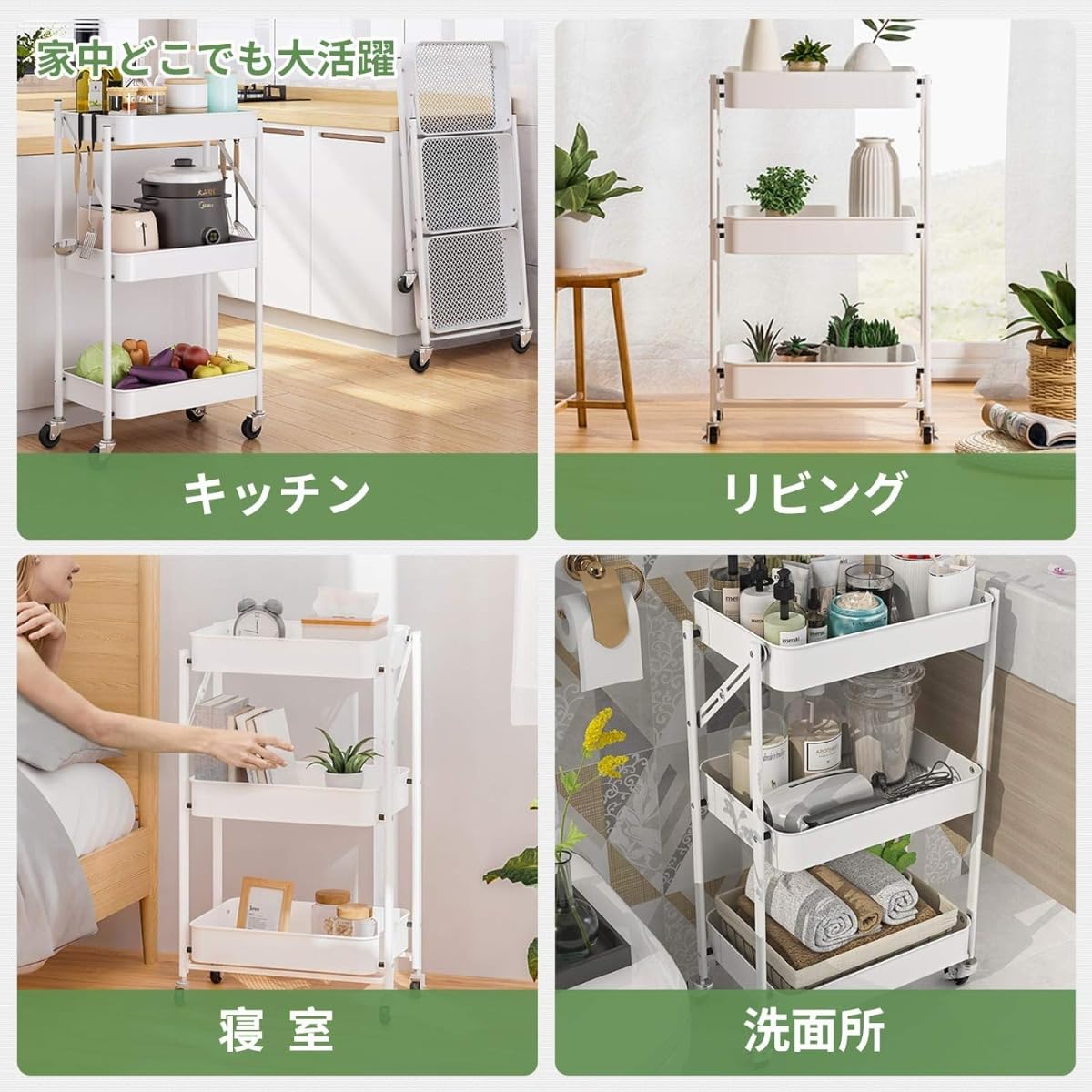 キッチンワゴン バスケットラック3段 ホワイト ブラック ピンク ブルー