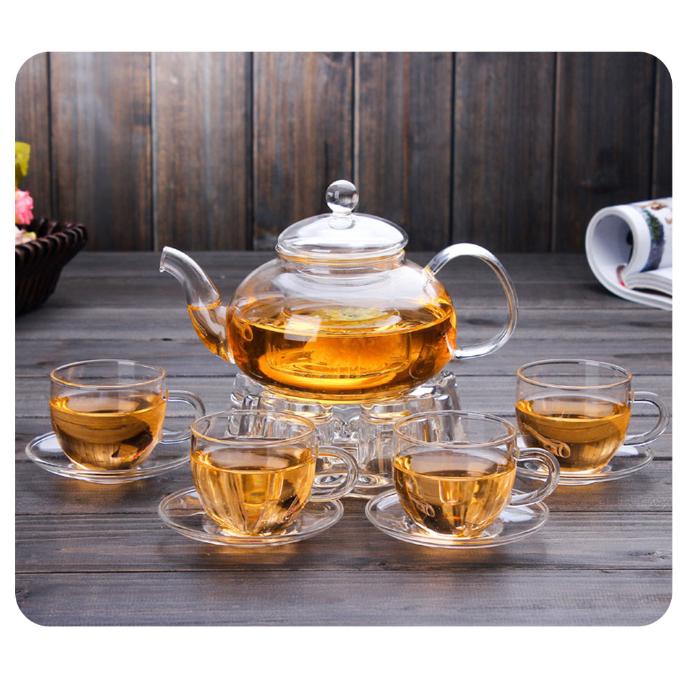 ティーポットセット 耐熱ガラス ティーカップ 6点セット 透明 ハート型ウォーマー付き おしゃれ 耐熱ガラス 急須 湯呑み 直火可 茶ポット ガラスカップ コーヒーカップ 真空断熱 紅茶 花茶 業務用