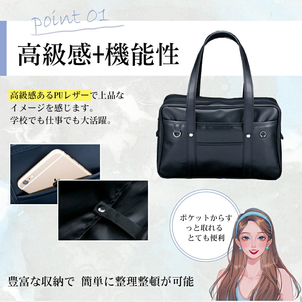 スクールバッグ 防水 PU トートバッグ 大容量 手提げ 人気 ショルダーバッグ 可愛い おしゃれ 男女兼用 軽量 レディース 日帰り 学生鞄 制服 JK制服 通学 高校生 ブラック ブラウン ピンク