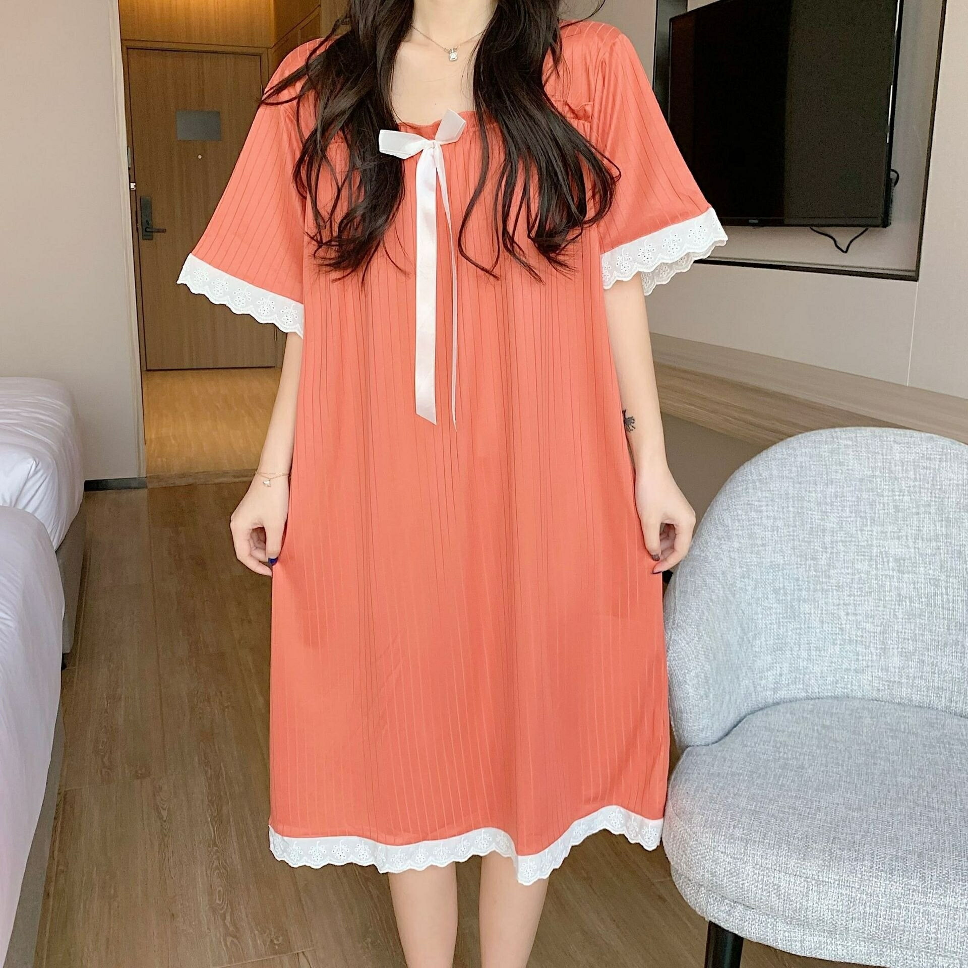 パジャマレディース ルームワンピース インナー 下着 ナイトウエア 続々登場 ホワイト ピンク ブルー イエロー グリーン レッド M(38-50kgにオススメ) L(50-60kgにオススメ) XL(60-70kgにオススメ) XXL(70-80kgにオススメ)