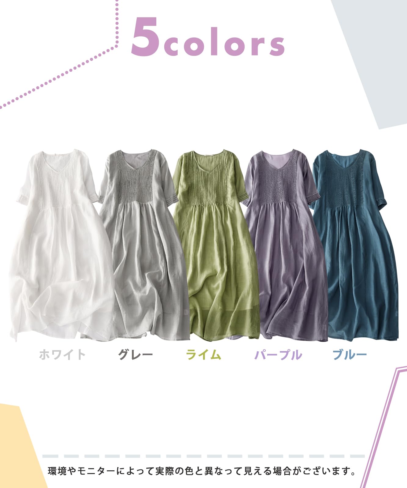 ロング ワンピース レディース 春 夏 レディースファッション 割引 ホワイト グレー ライム パープル ブルー ベージュ M L XL