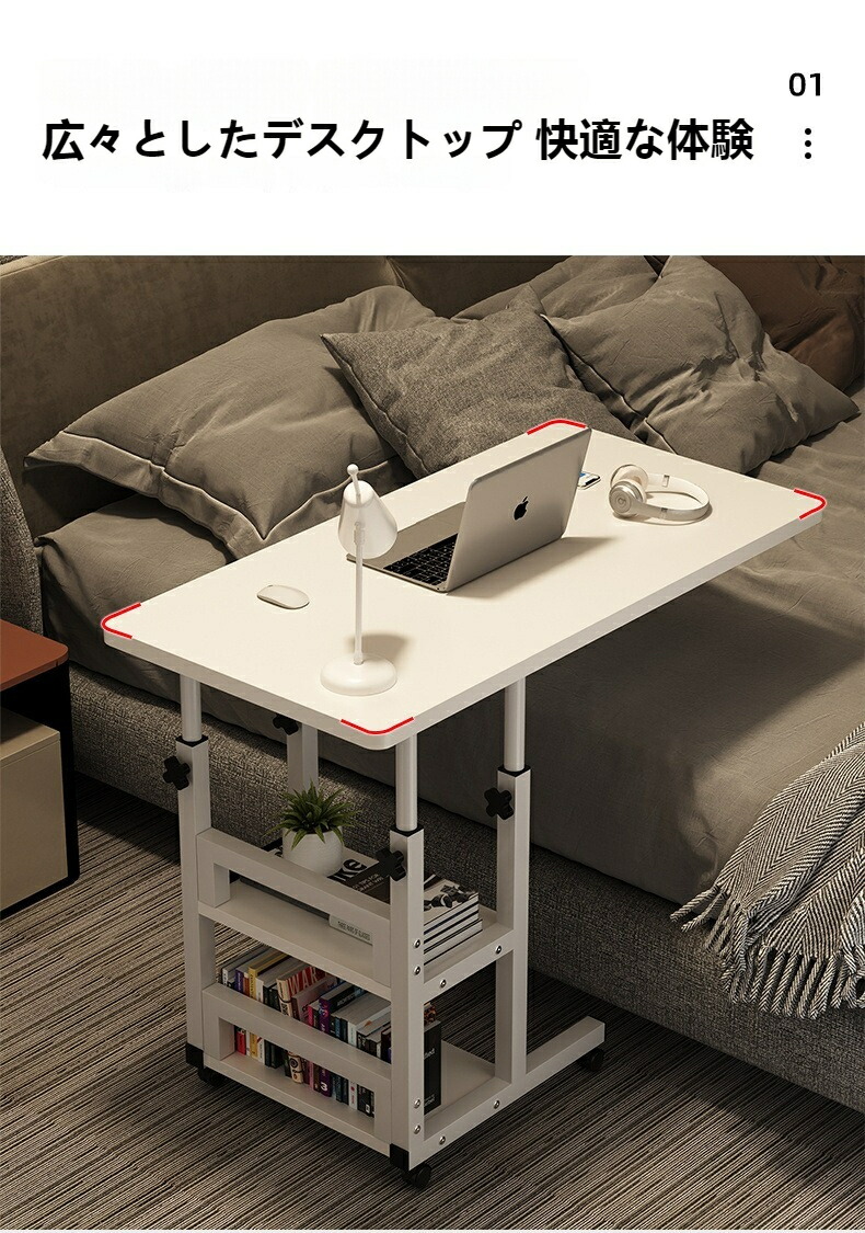 ベッドサイドデスク 高さ調節 パソコン ホワイト 木目色 ブラック 60*40cm 80*40cm