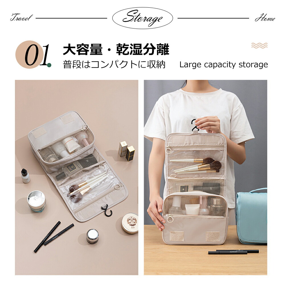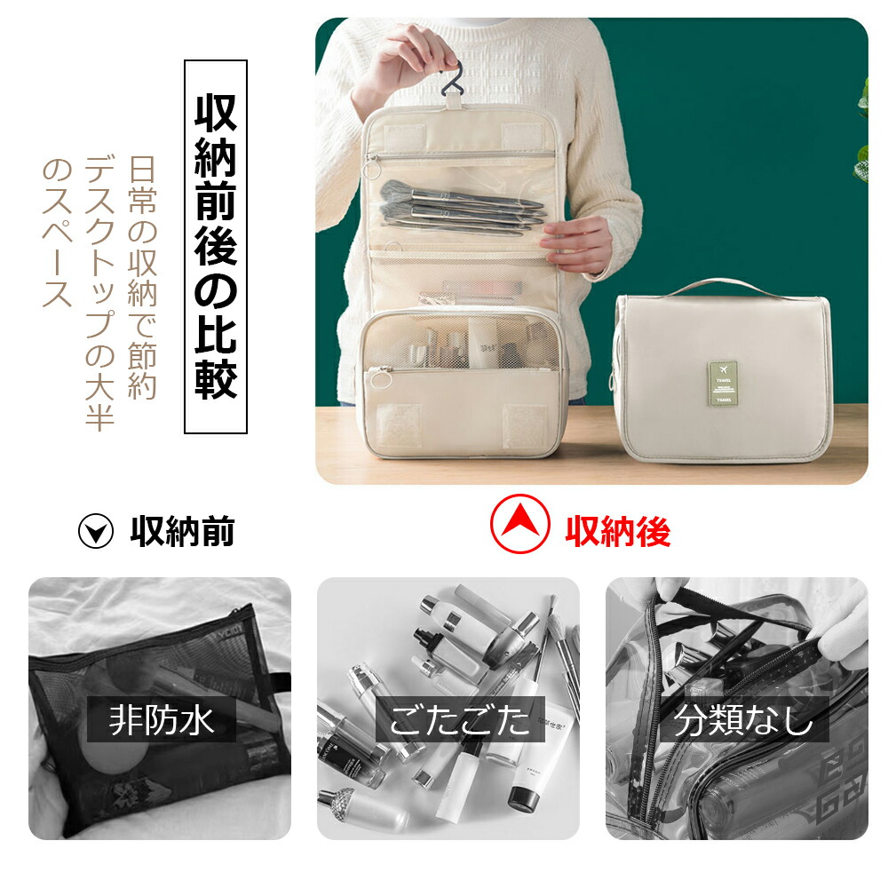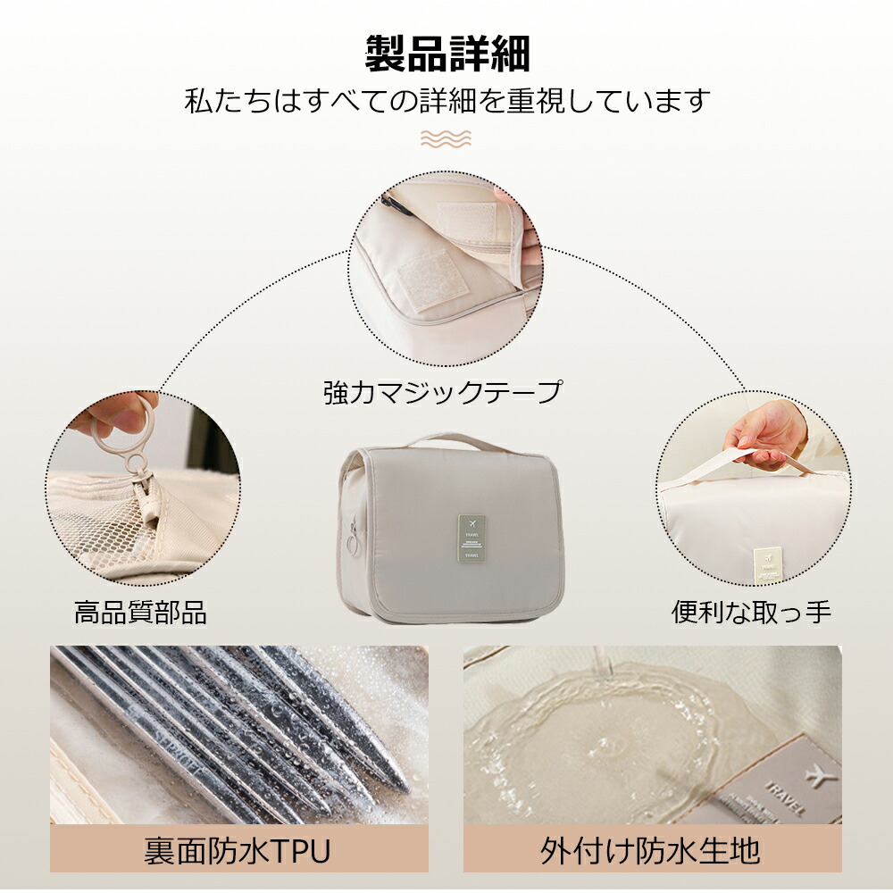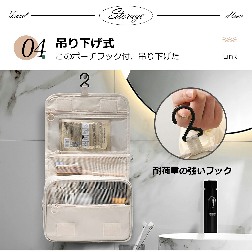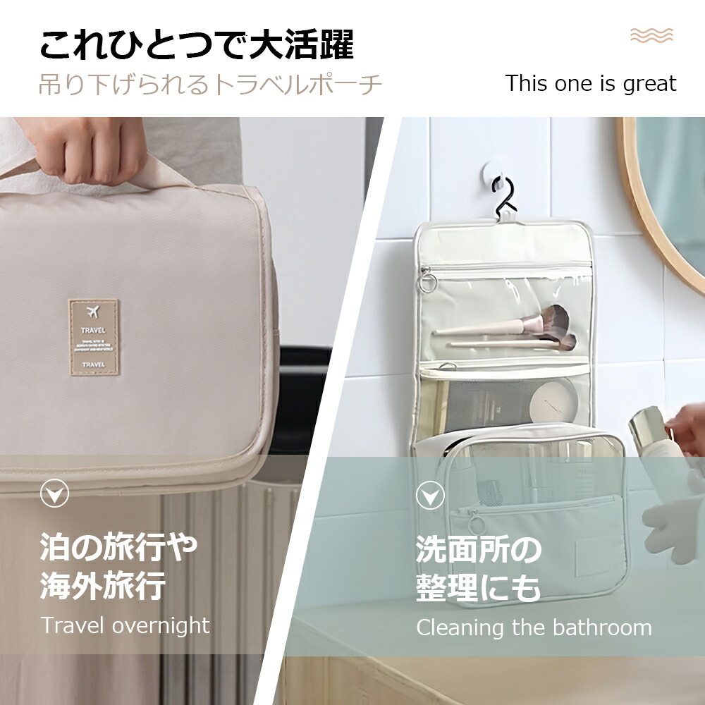 トラベルポーチ 吊り下げ 壁掛け 旅行 日用品雑貨 文房具 手芸 特集 アイボリー グレー ネイビー ピンク ブラック ブルー