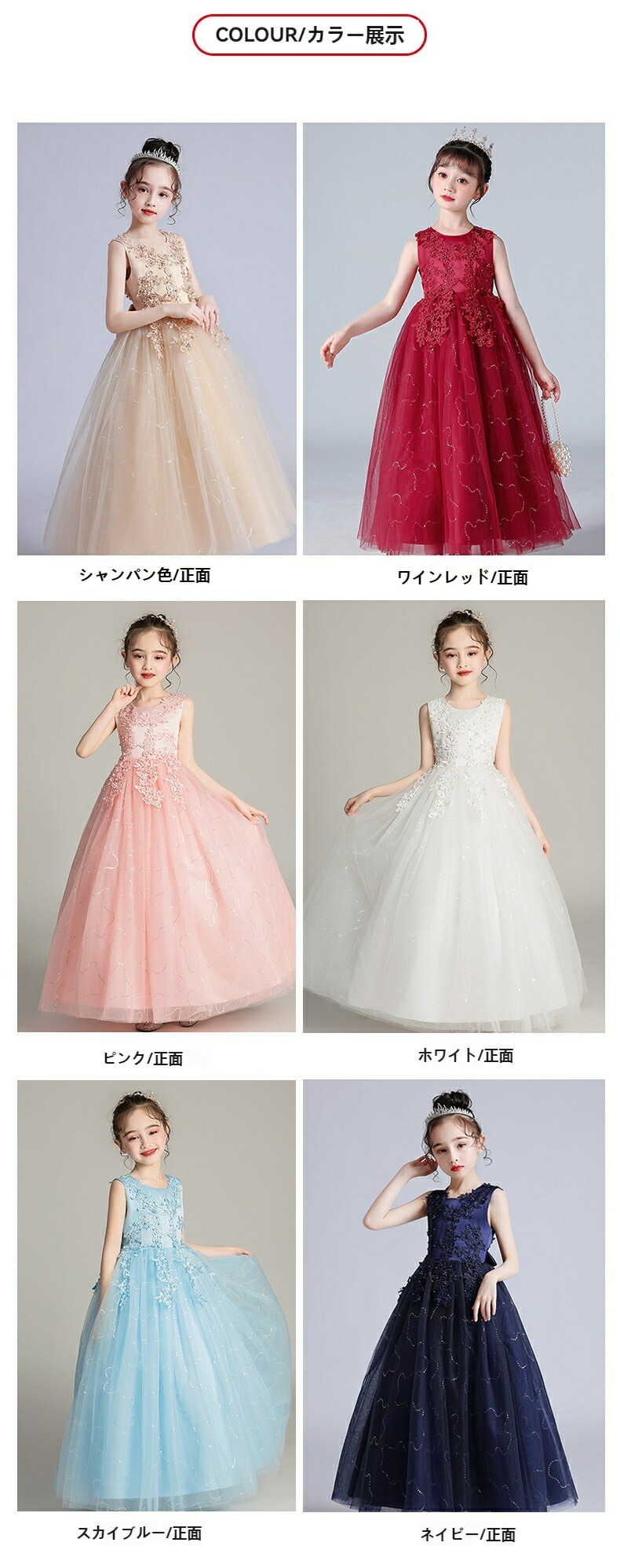 子供 ドレス ピアノ 発表会 コンクー キッズ ドレス お買い得 シャンパン色 ホワイト ピンク スカイブルー ネイビー ワインレッド 120cm 130cm 140cm 150cm 160cm 170cm
