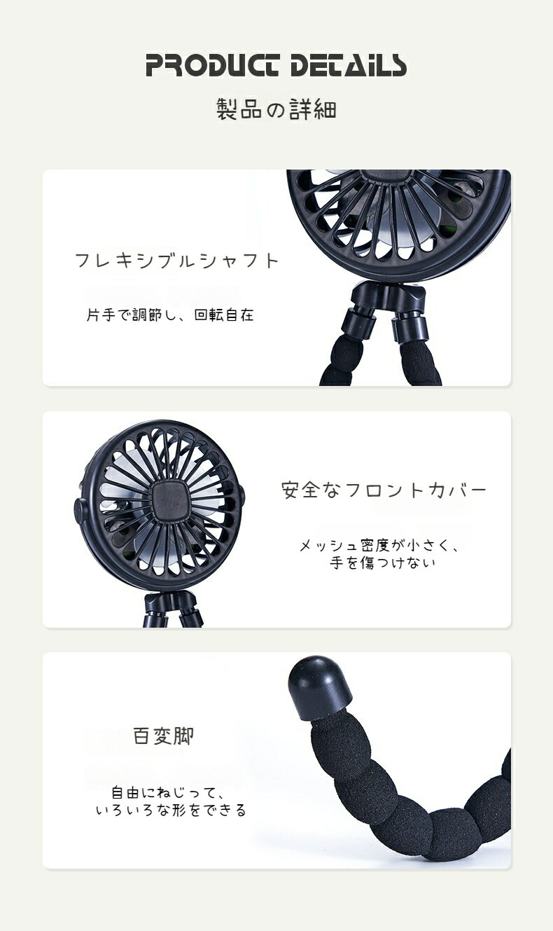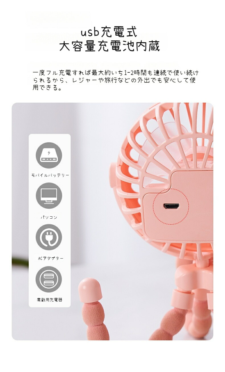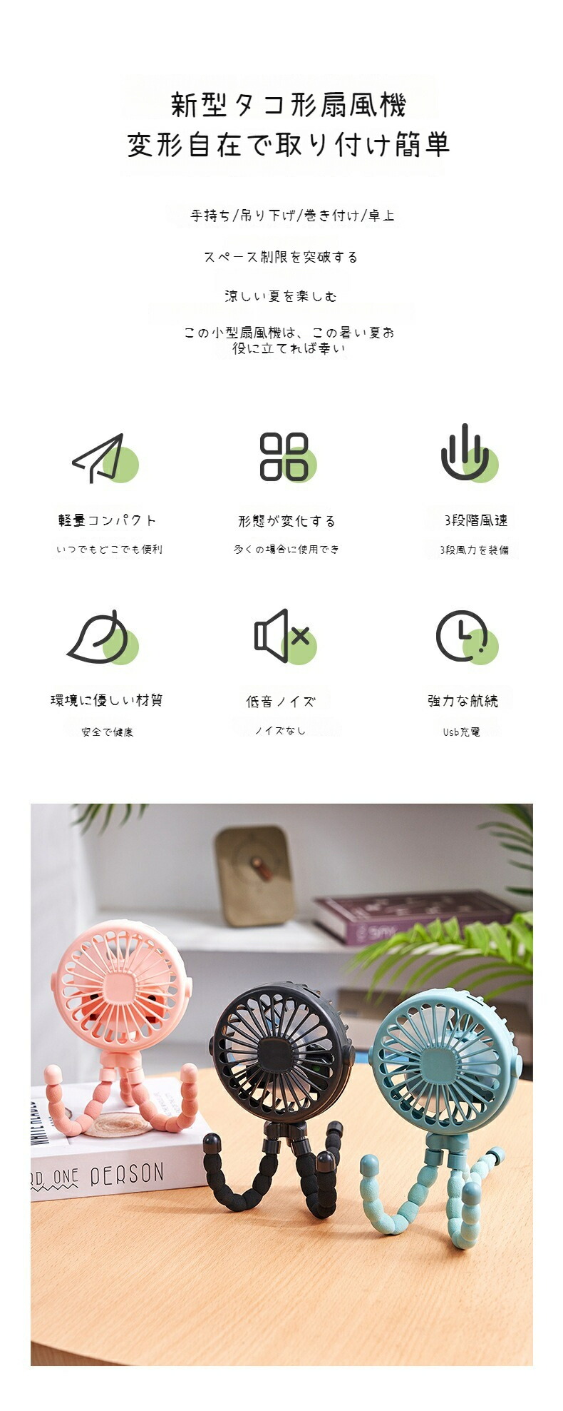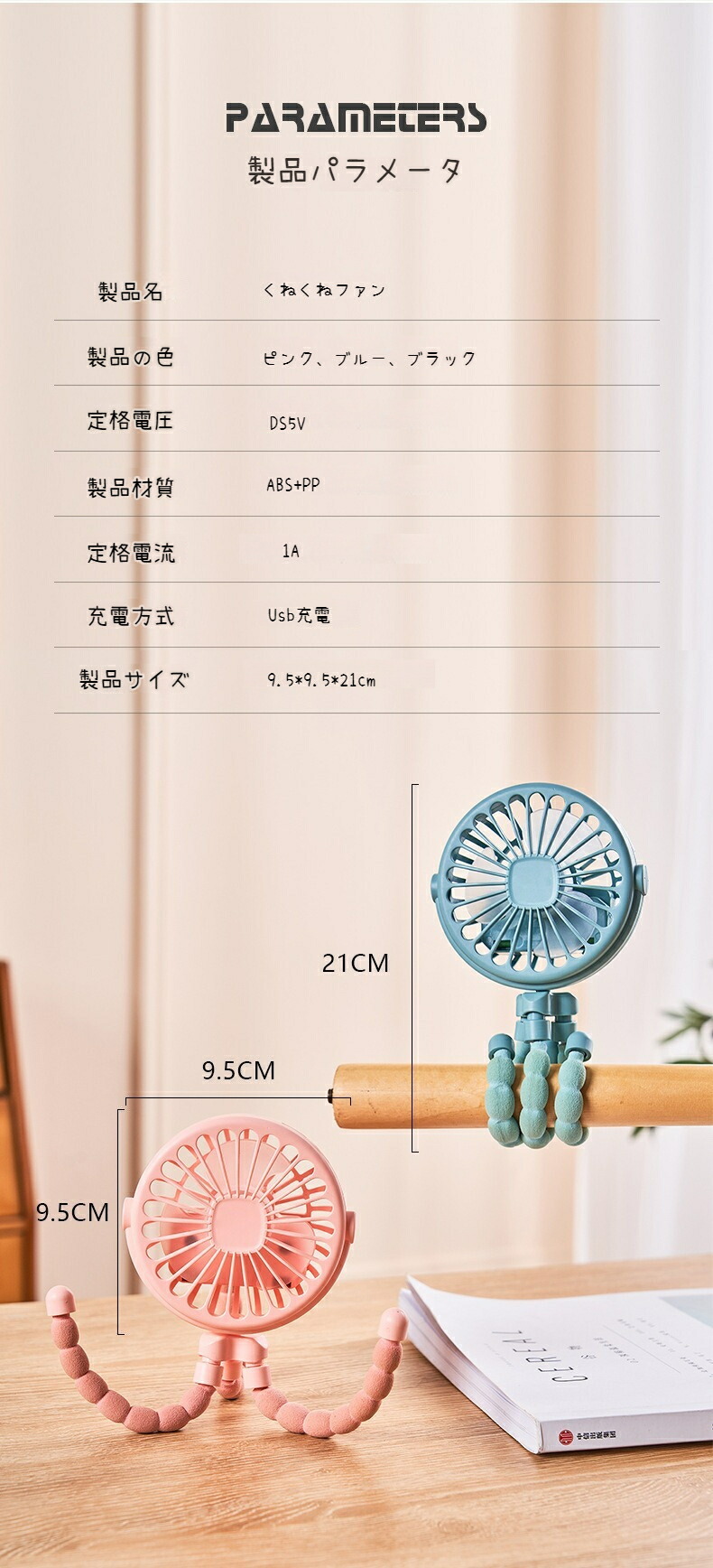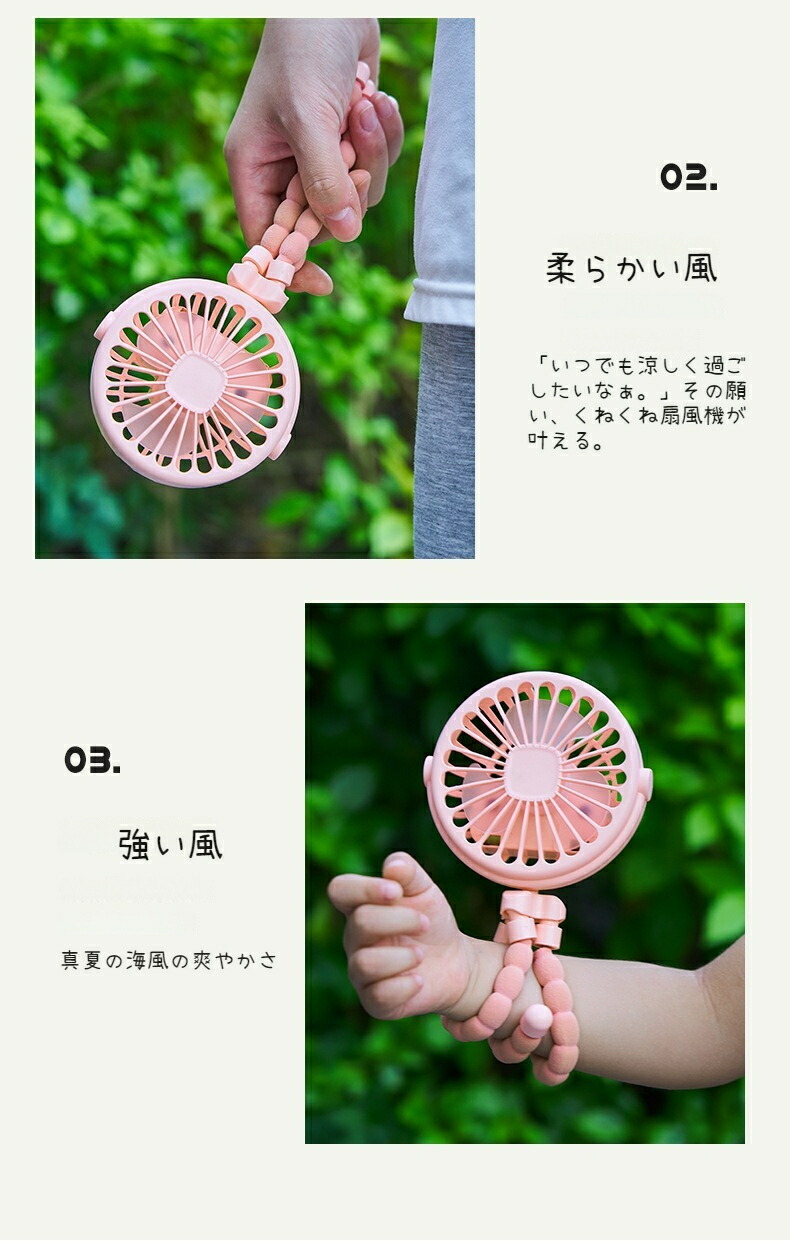 くねくねファン 小型扇風機 ハンディフ ブラック ピンク ブルー