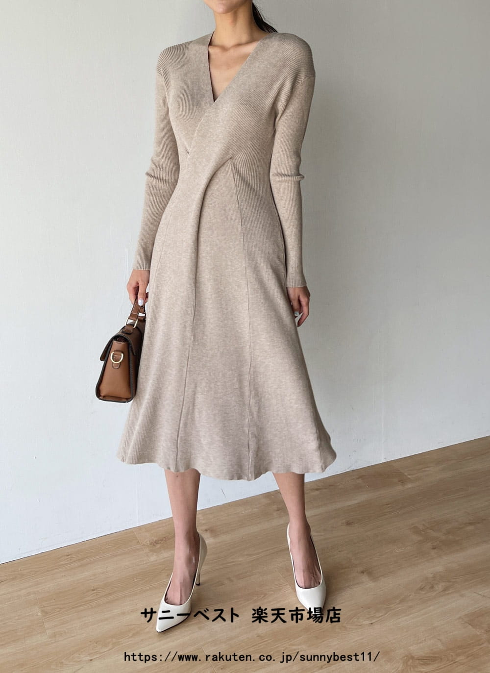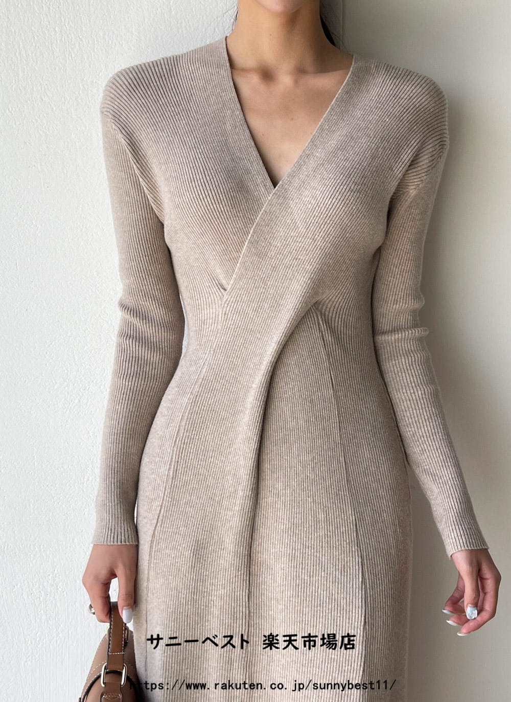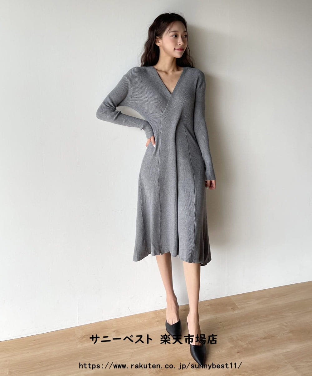 カシミヤ混クロスVネックニットワンピー