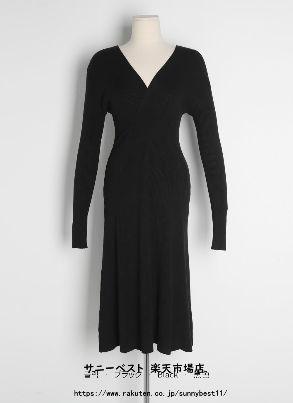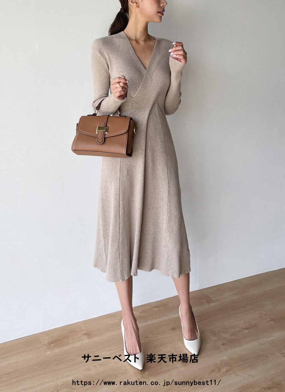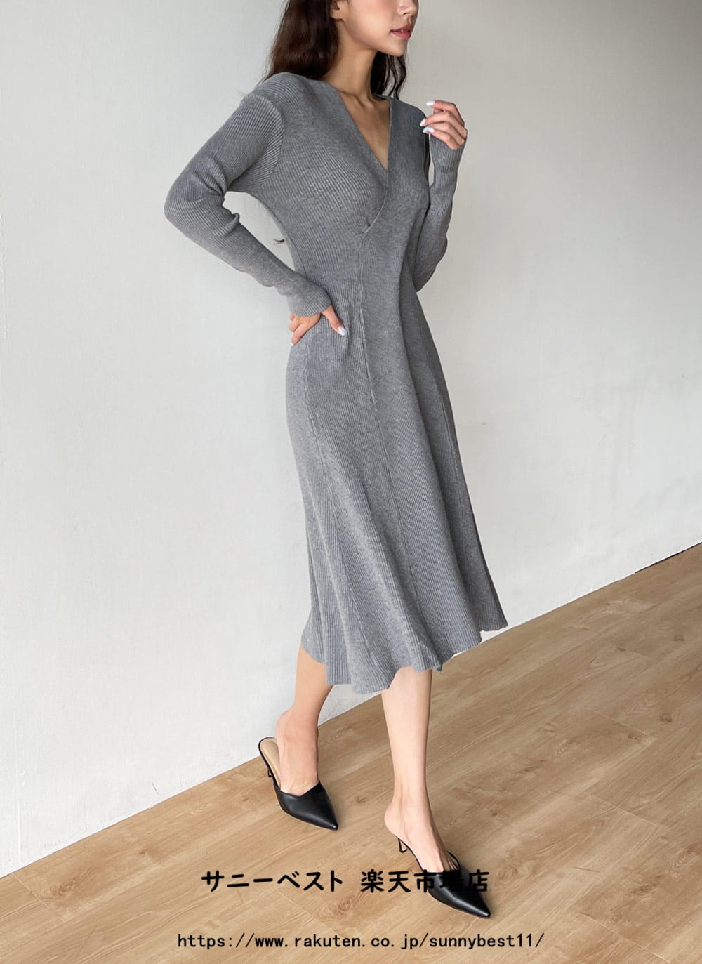 カシミヤ混クロスVネックニットワンピー