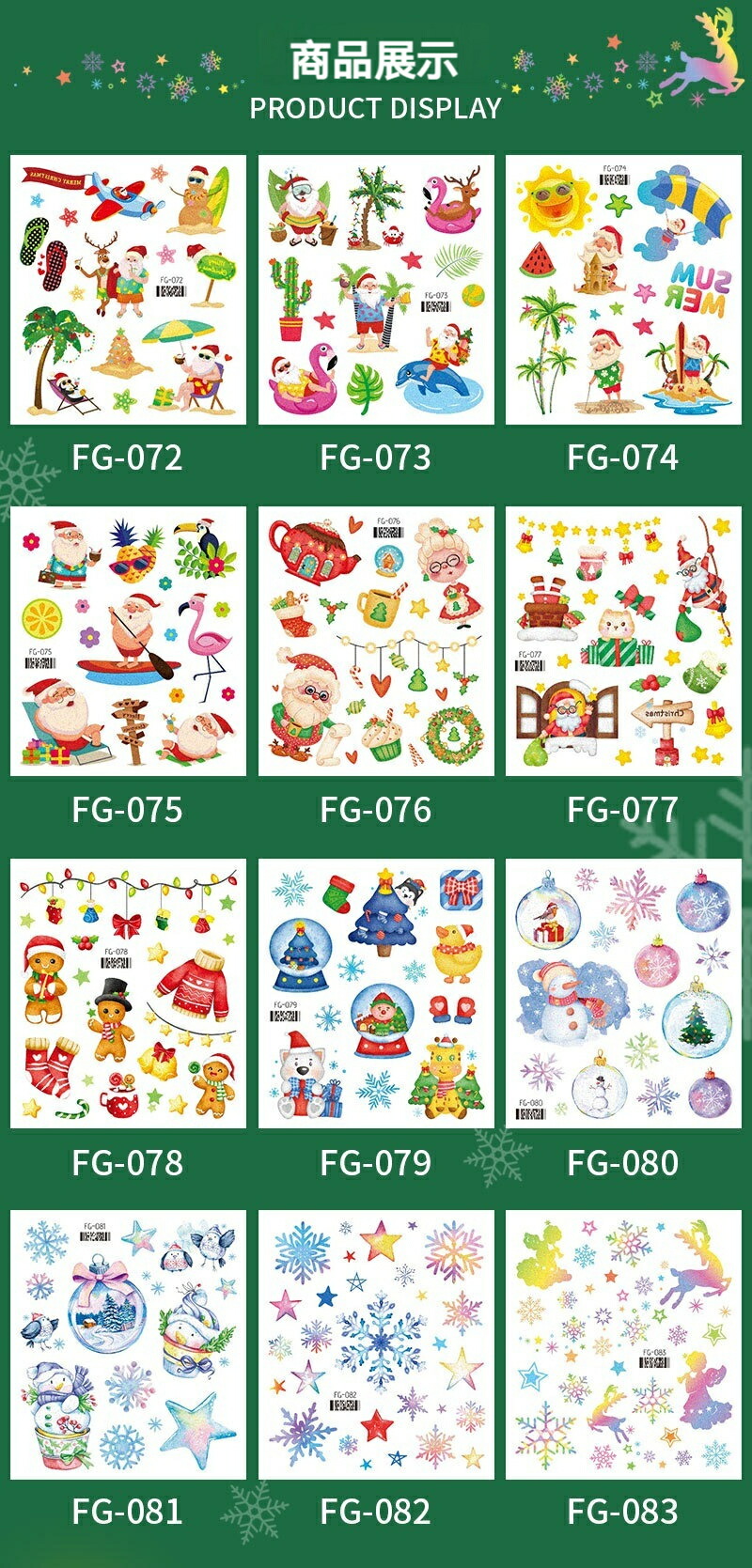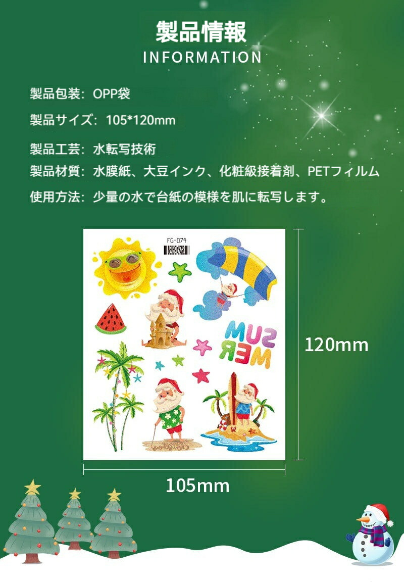 クリスマス フェイスシール 子供 6枚 タイプ1 タイプ2