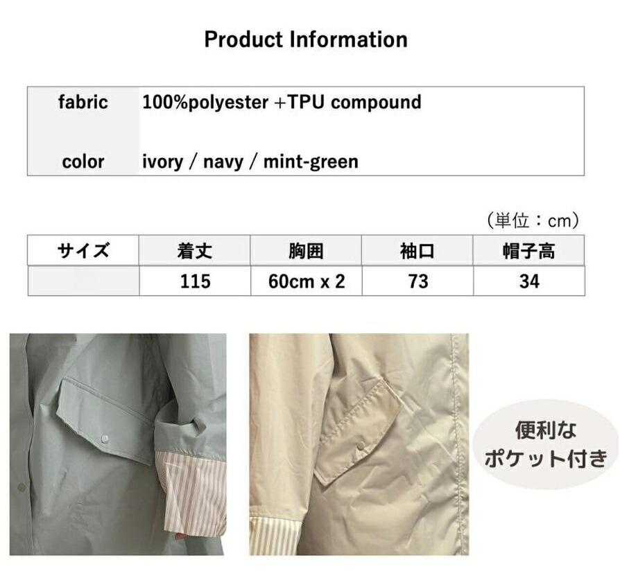 レインコート 自転車 レディース ポン レインウエア レインコート お買い得 ミントグリーン ネイビー アイボリー