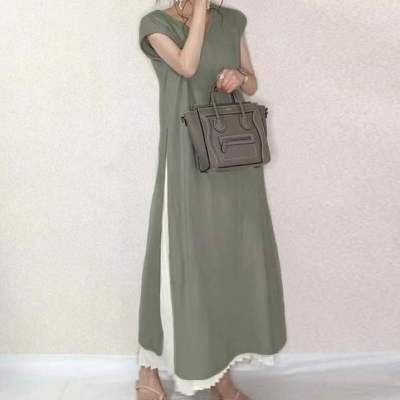 シンプル コットン ワンピース ゆった ワンピース 割引 ベージュ ライトグレー グリーン